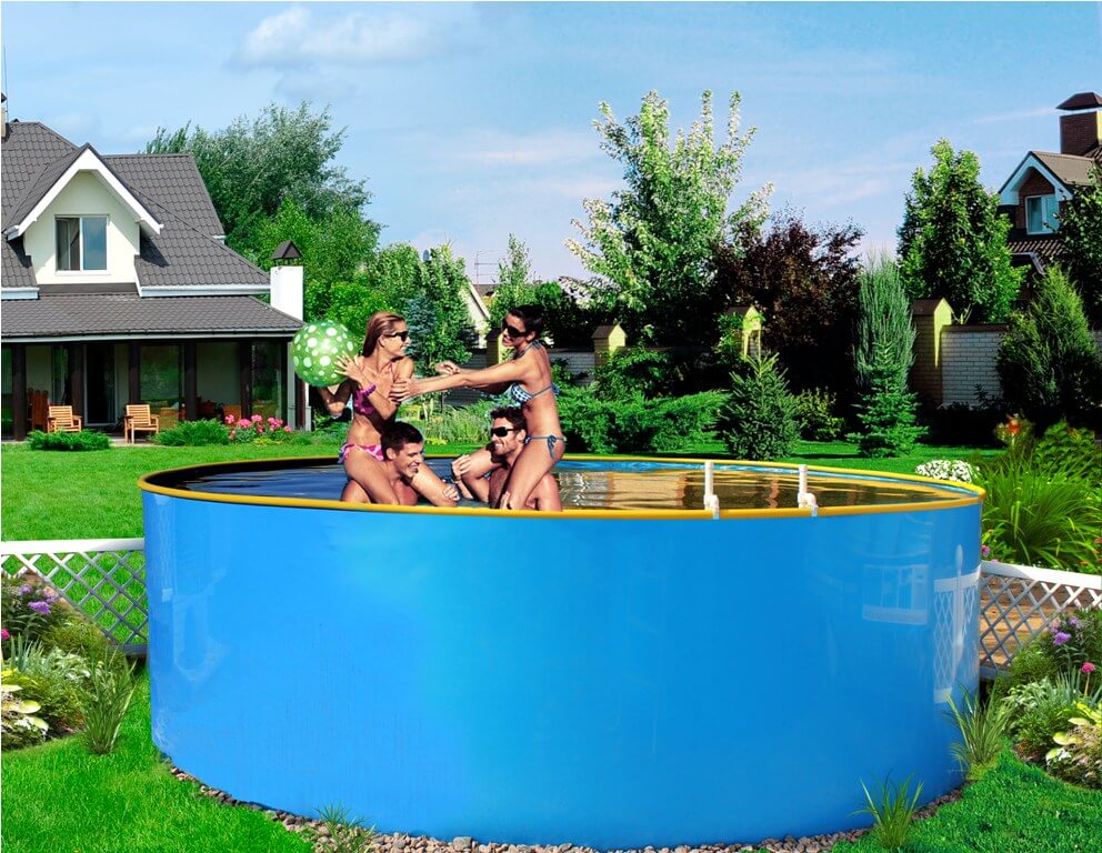 Установив такой бассейн на даче Вы сможете поплавать и даже понырять. Чудесный вариант для купания всех членов семьи, для игр на воде и хорошего активного отдыха. Самостоятельный несложный монтаж не требующий специальных навыков и инструмента. Бассейн можно прикапывать и не разбирать на зиму. Требуется лестница и по желанию фильтровальная установка.