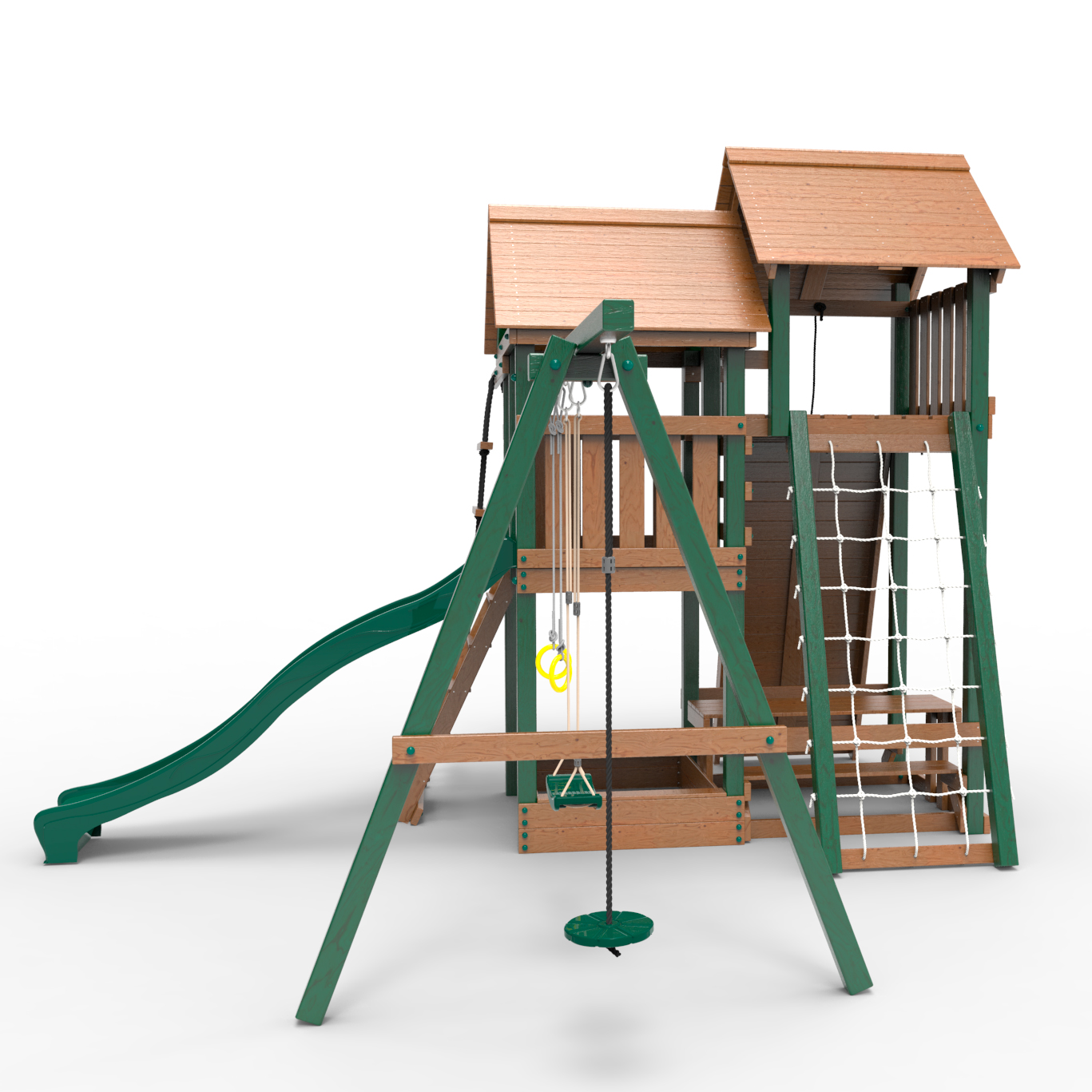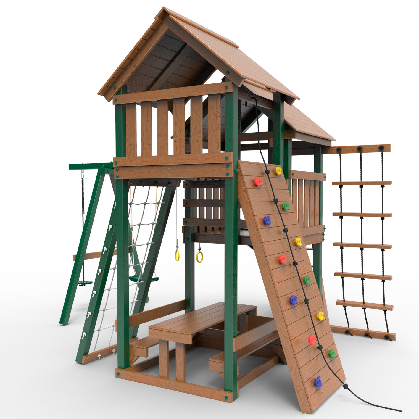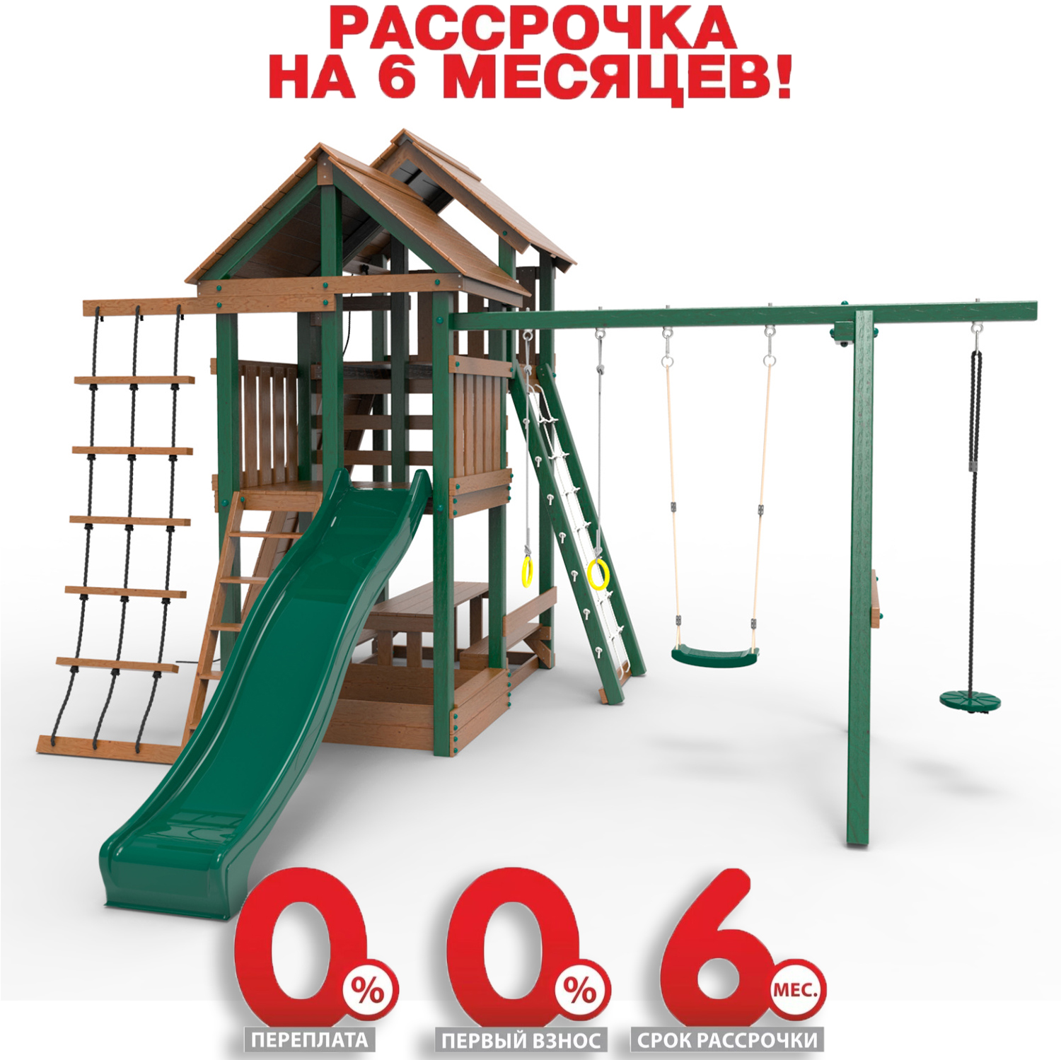 Обращаем Ваше внимание, что фактический цвет детской площадки может отличаться от представленных фото на сайте. Специфика окраски нетоксичными пропитками и красителями допускает отклонения в цветовой гамме отгружаемых изделий. Также обратите внимание, что фактический цвет может отличаться из-за цветопередачи устройства на котором Вы смотрите фото.