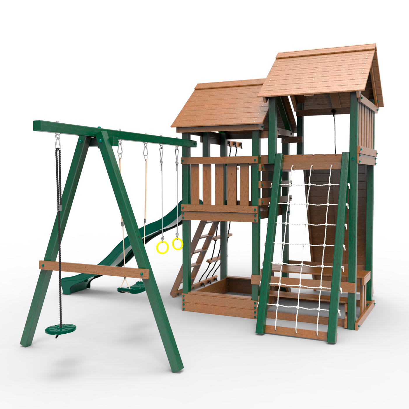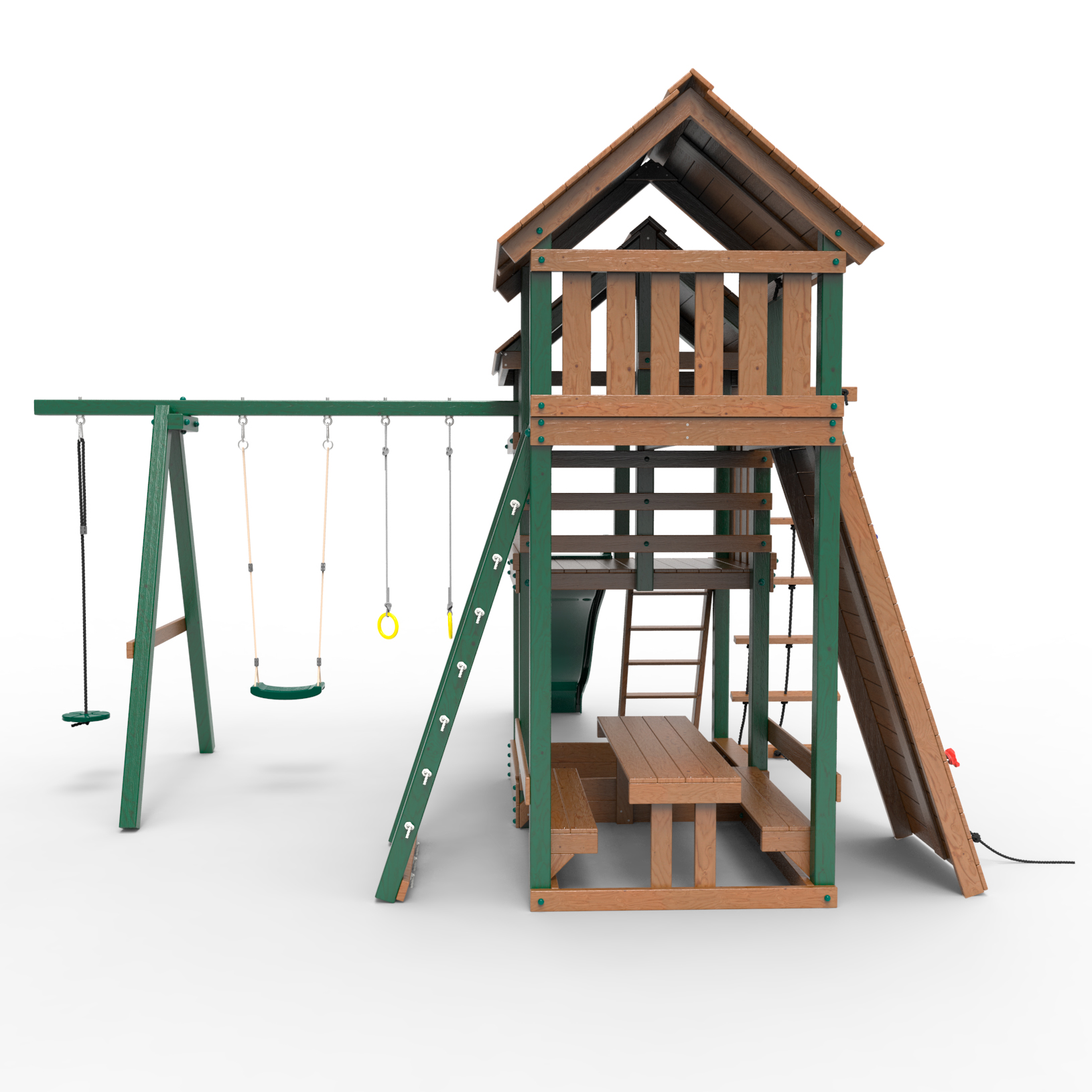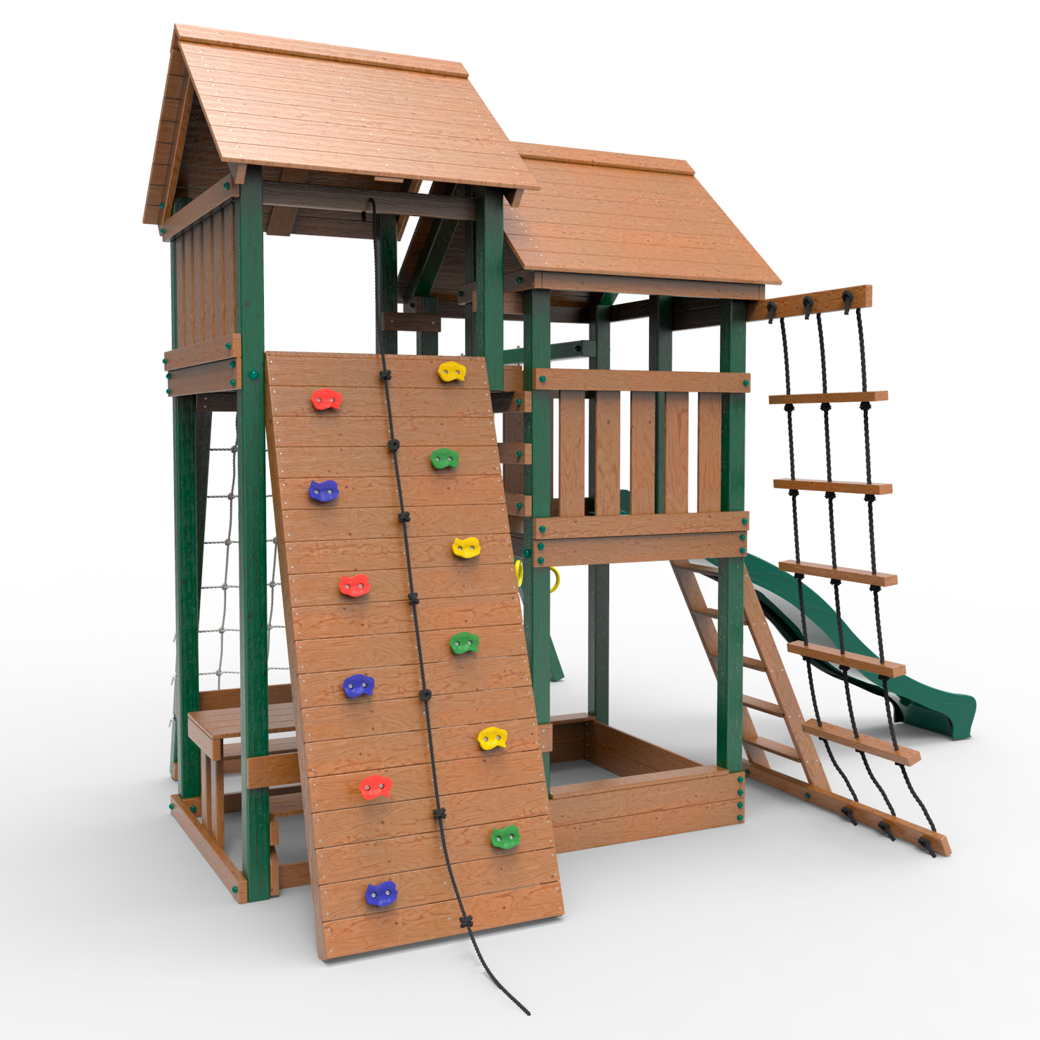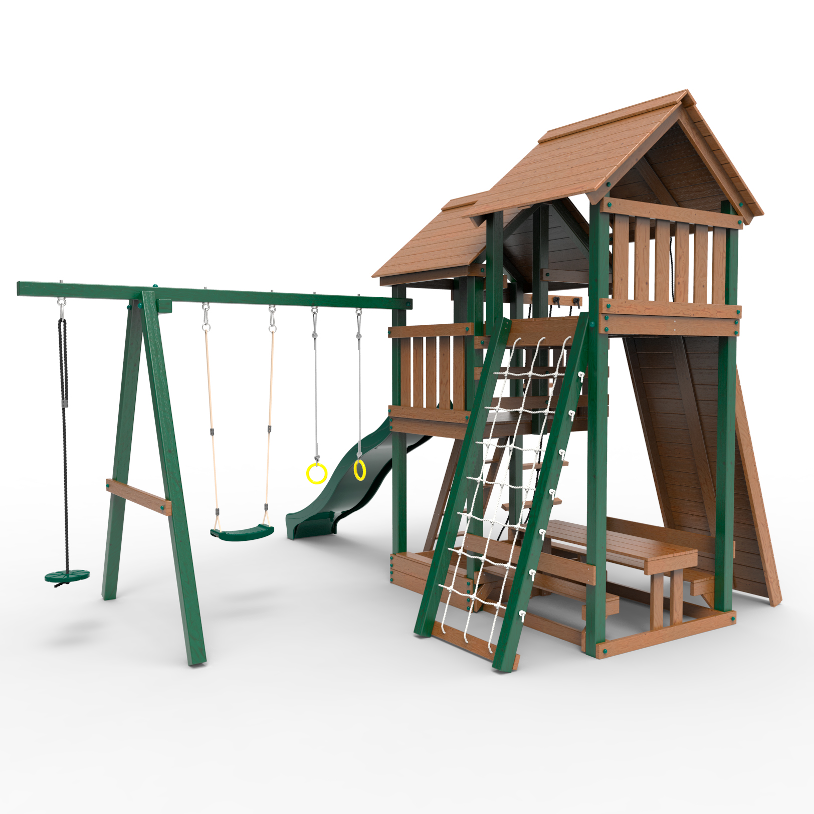 Обращаем Ваше внимание, что фактический цвет детской площадки может отличаться от представленных фото на сайте. Специфика окраски нетоксичными пропитками и красителями допускает отклонения в цветовой гамме отгружаемых изделий. Также обратите внимание, что фактический цвет может отличаться из-за цветопередачи устройства на котором Вы смотрите фото.