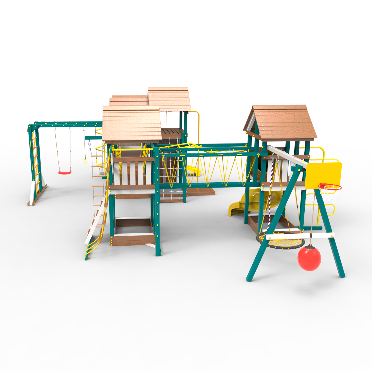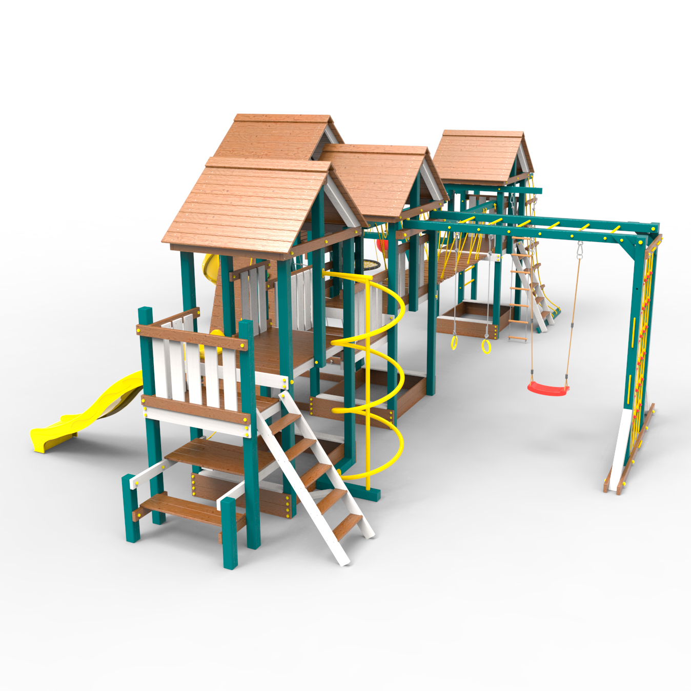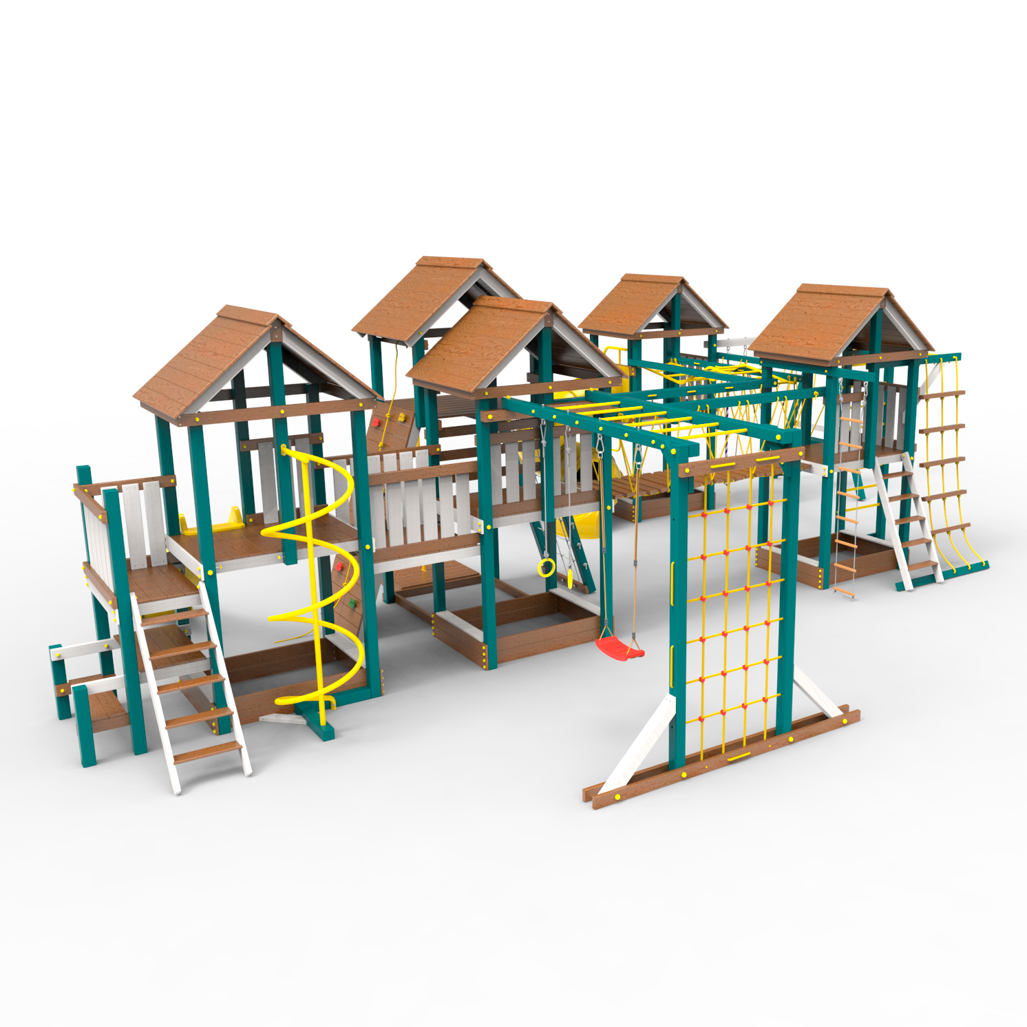 Высокий домик|Два домика|Песочница|Лестница|Шторм-трап|Скалодром|Шведская стенка|Рукоход|Турник|Руфер|Балкон|Столик с лавочками|Баскетбольная корзина|Мостик|Подвесной мост|Горка|Винтовая труба|Спираль|Волна|Пожарный шест|Сеть для лазания|Качели|ЗигЗаг|Переправа |