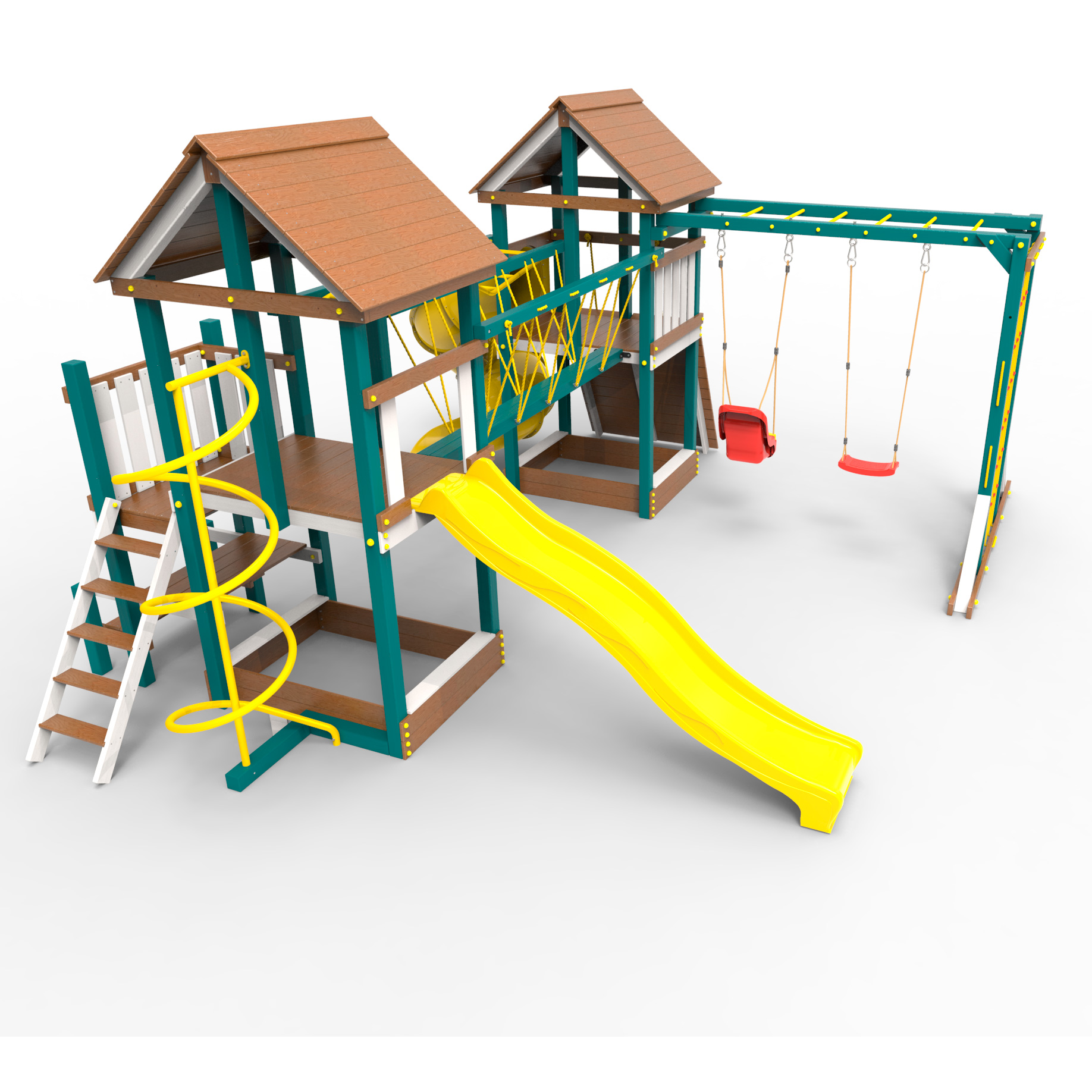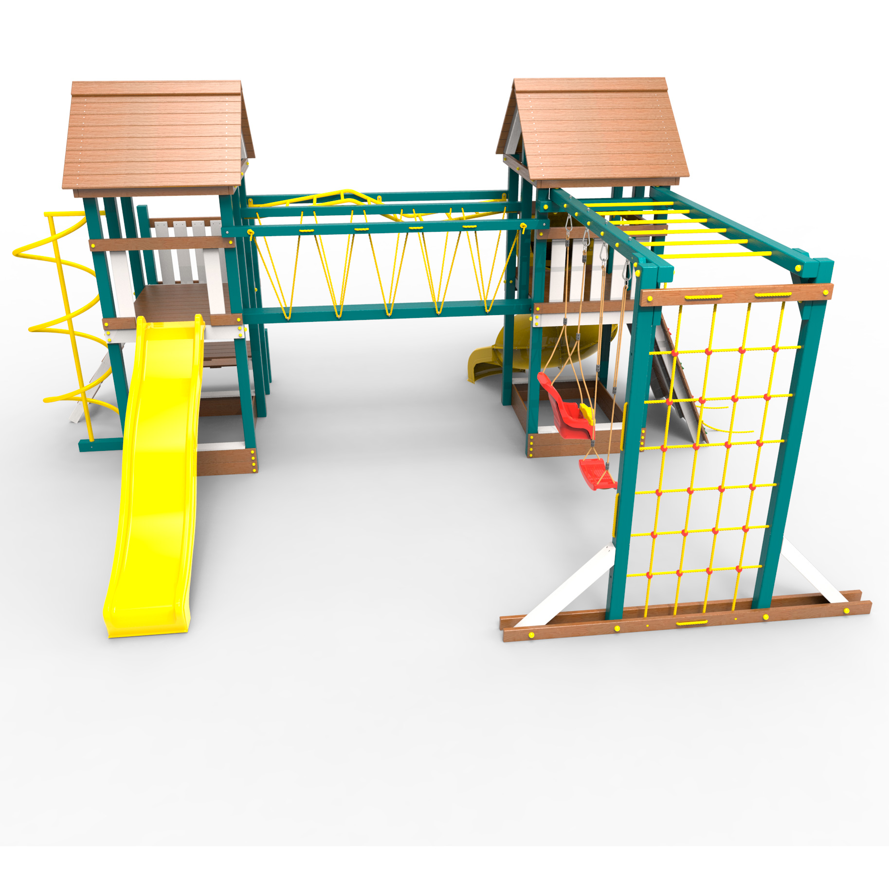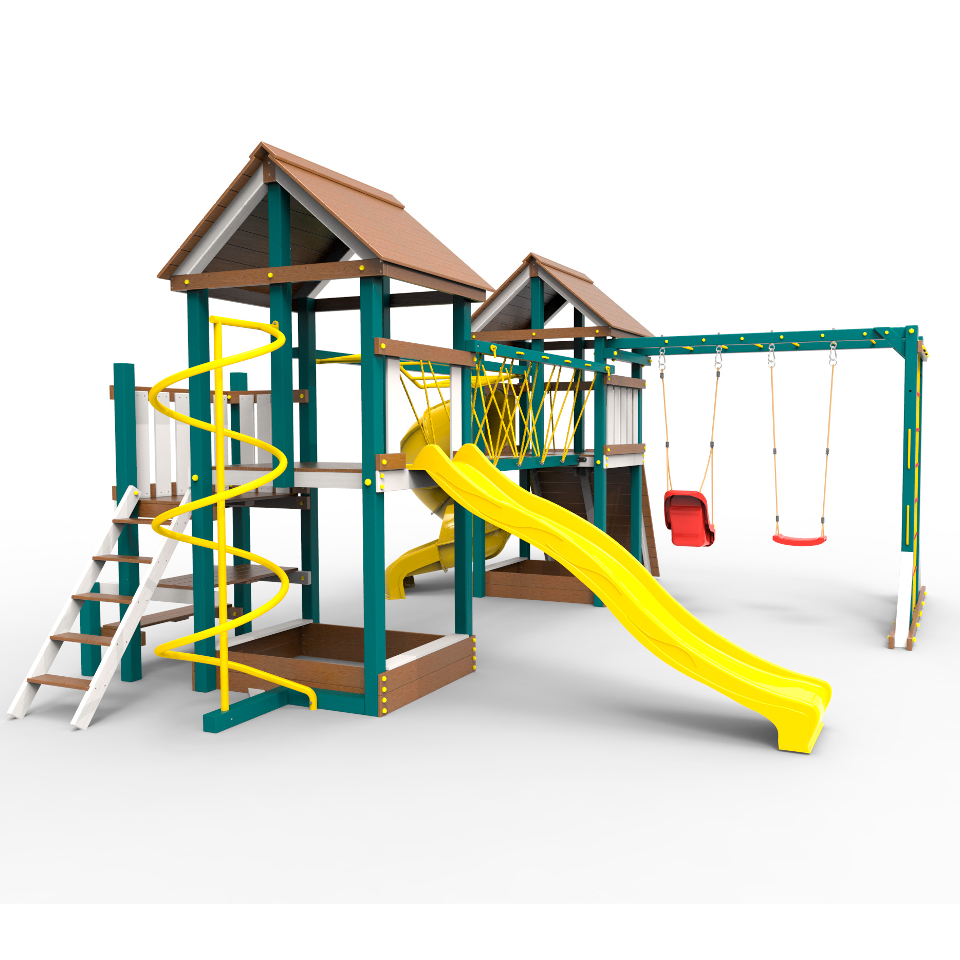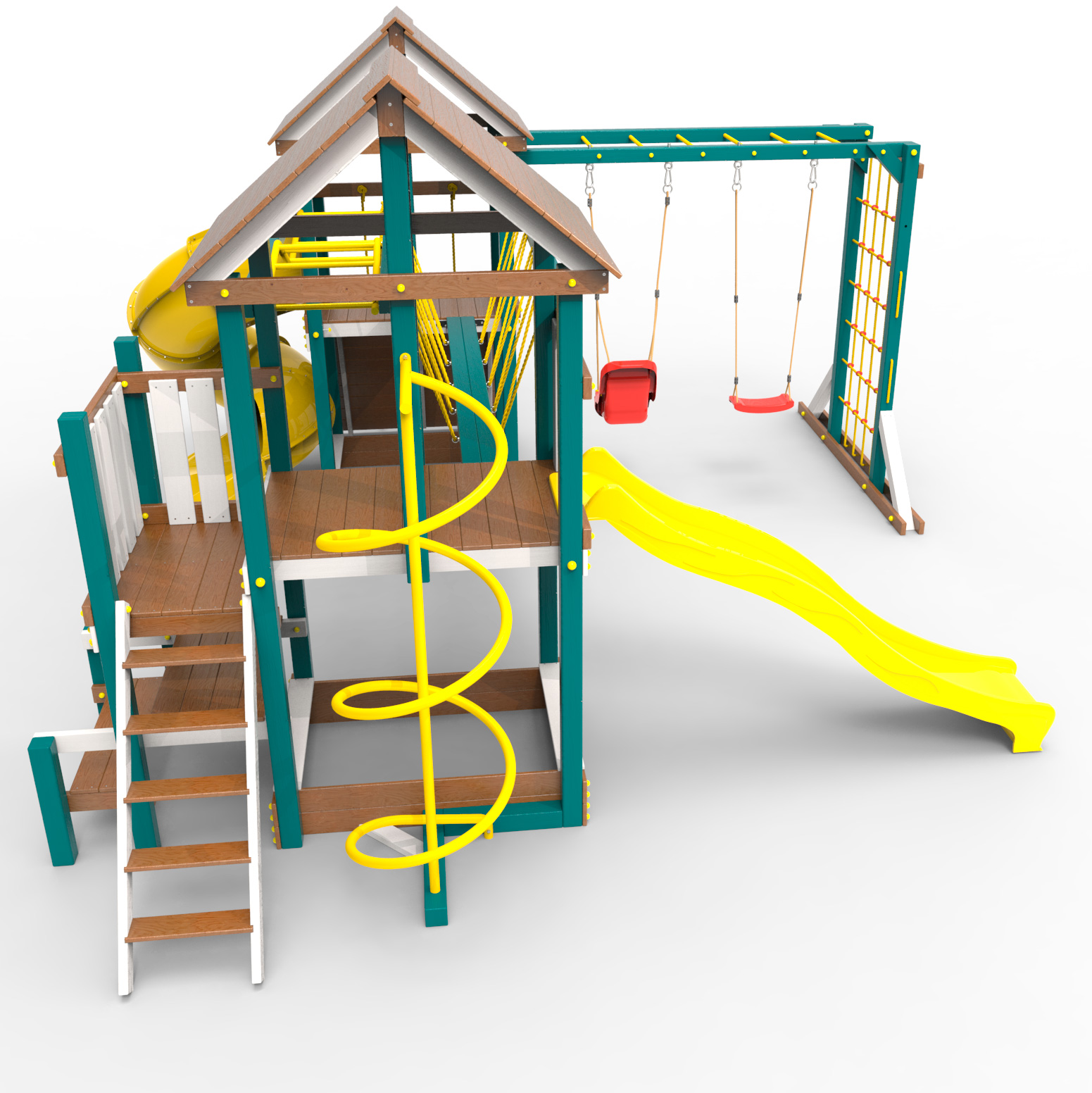 Обращаем Ваше внимание, что фактический цвет детской площадки может отличаться от представленных фото на сайте. Специфика окраски нетоксичными пропитками и красителями допускает отклонения в цветовой гамме отгружаемых изделий. Также обратите внимание, что фактический цвет может отличаться из-за цветопередачи устройства на котором Вы смотрите фото. Производитель оставляет за собой право менять цвет отдельных деталей и комплектующих(включая пластик, канаты и пр.), при этом сохраняя весь функционал и характеристики товара.