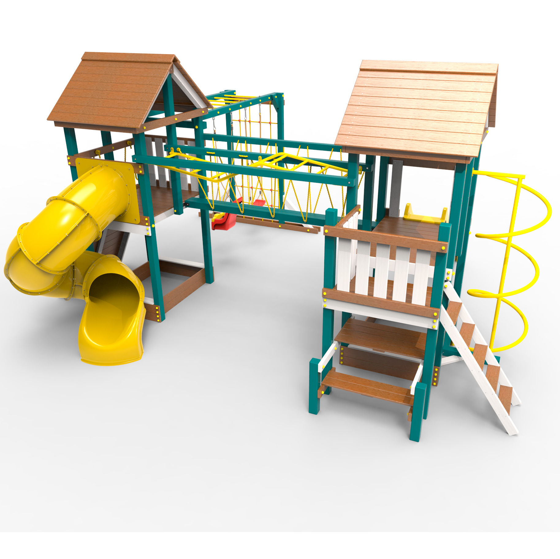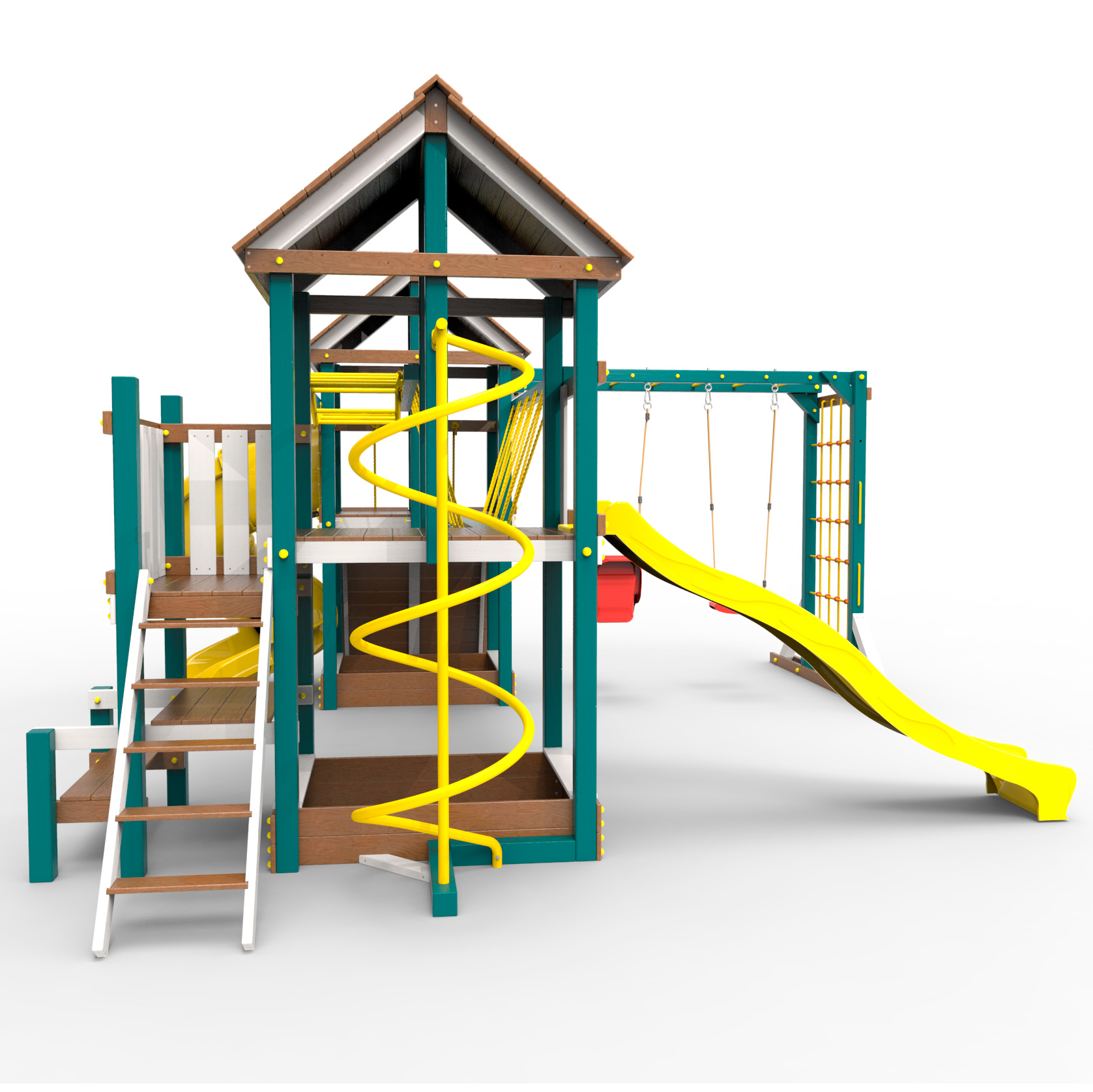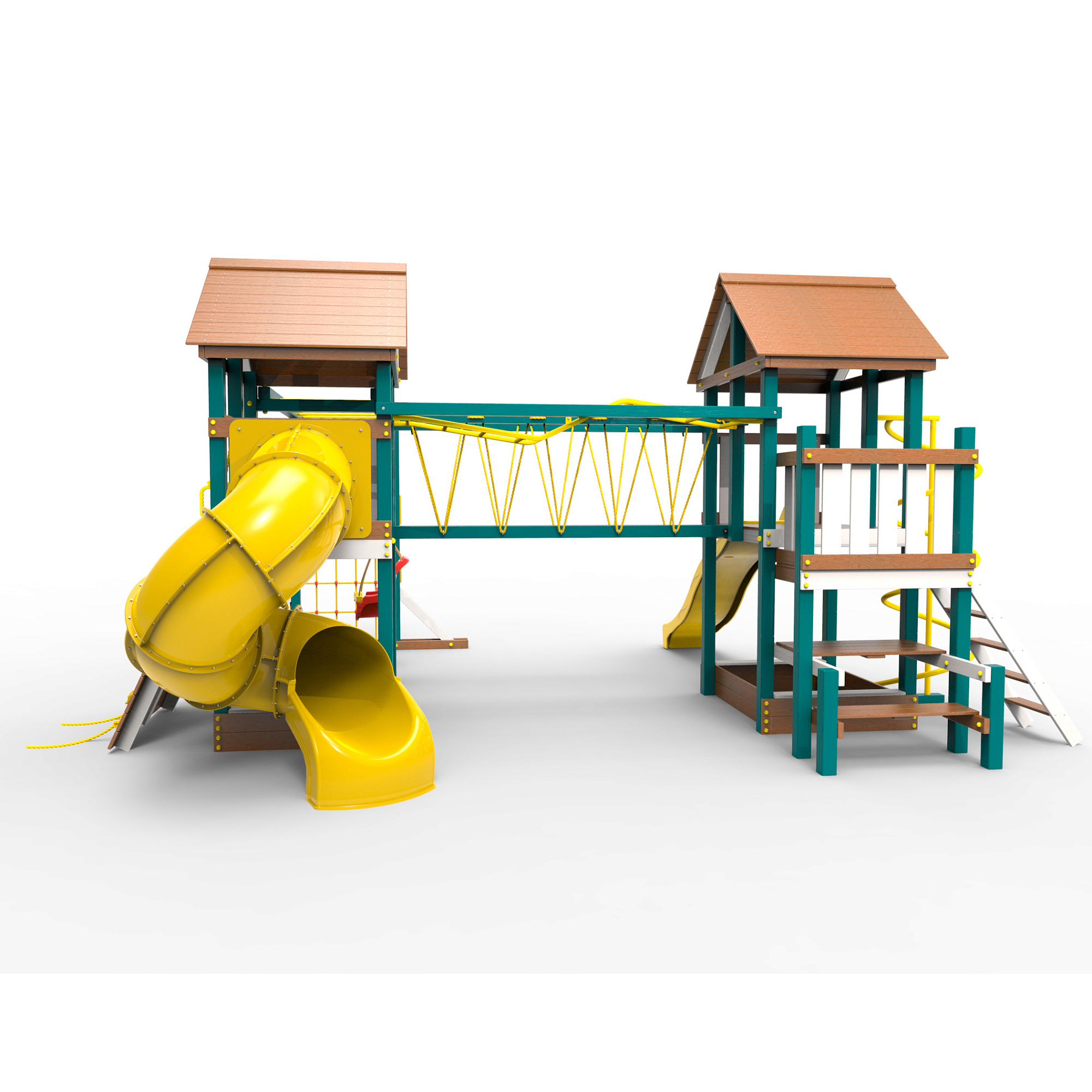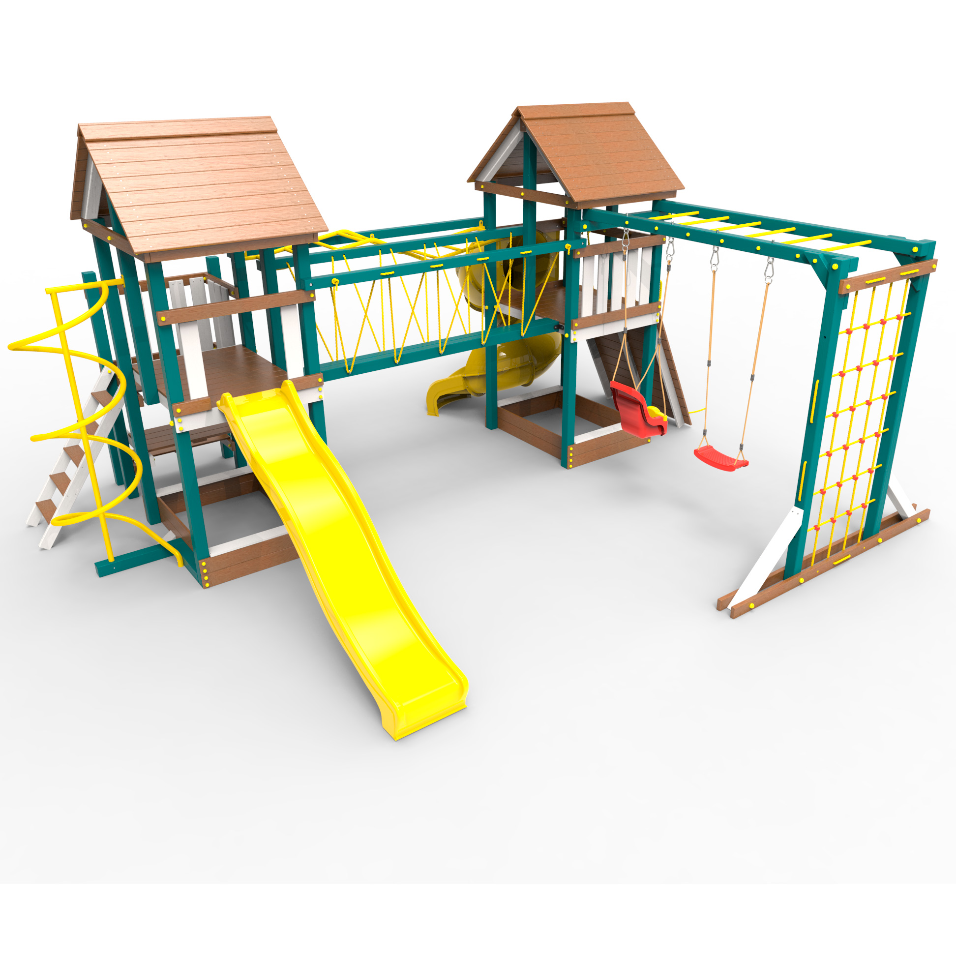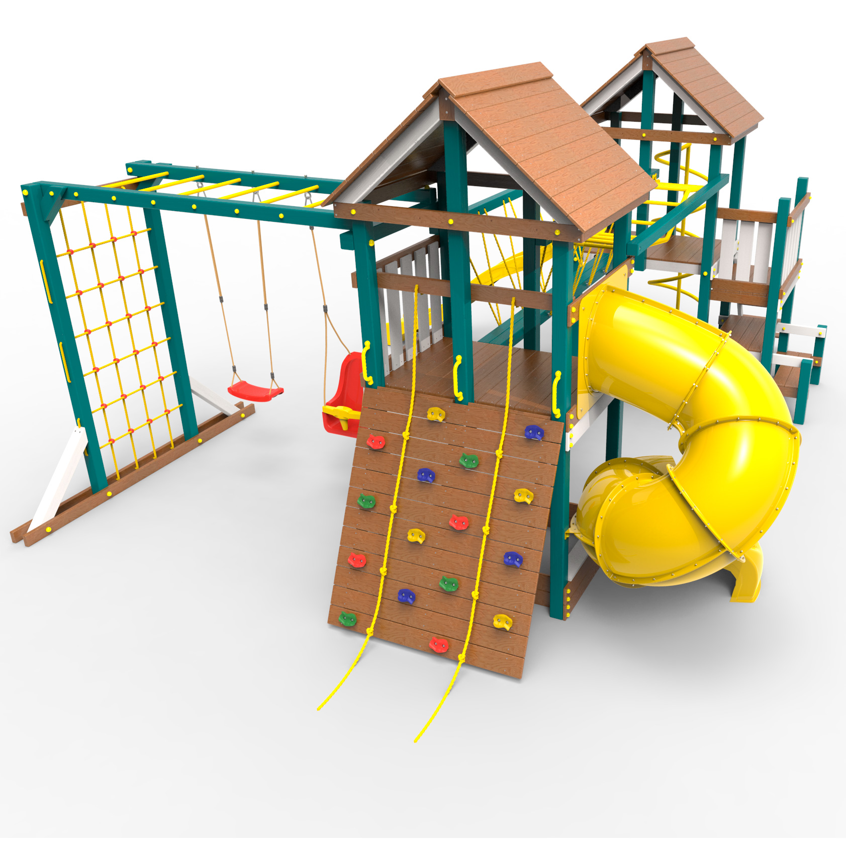 Обращаем Ваше внимание, что фактический цвет детской площадки может отличаться от представленных фото на сайте. Специфика окраски нетоксичными пропитками и красителями допускает отклонения в цветовой гамме отгружаемых изделий. Также обратите внимание, что фактический цвет может отличаться из-за цветопередачи устройства на котором Вы смотрите фото. Производитель оставляет за собой право менять цвет отдельных деталей и комплектующих(включая пластик, канаты и пр.), при этом сохраняя весь функционал и характеристики товара.