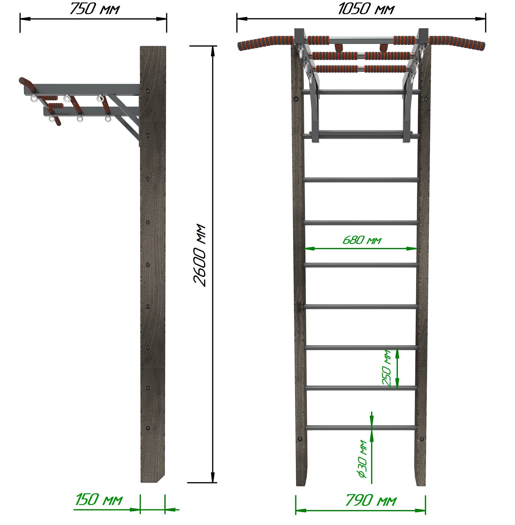 Усиленная шведская стенка. Подойдет как для взрослых так и для детей.