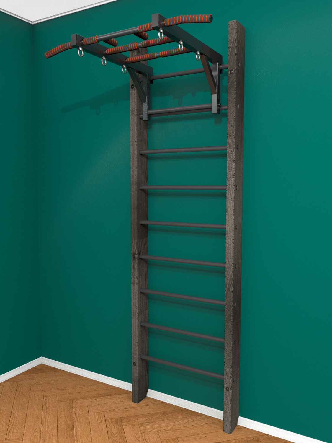 картинка Брашированная шведская стенка "Кастерли" Black с турником (Черные ступени) от магазина Лазалка