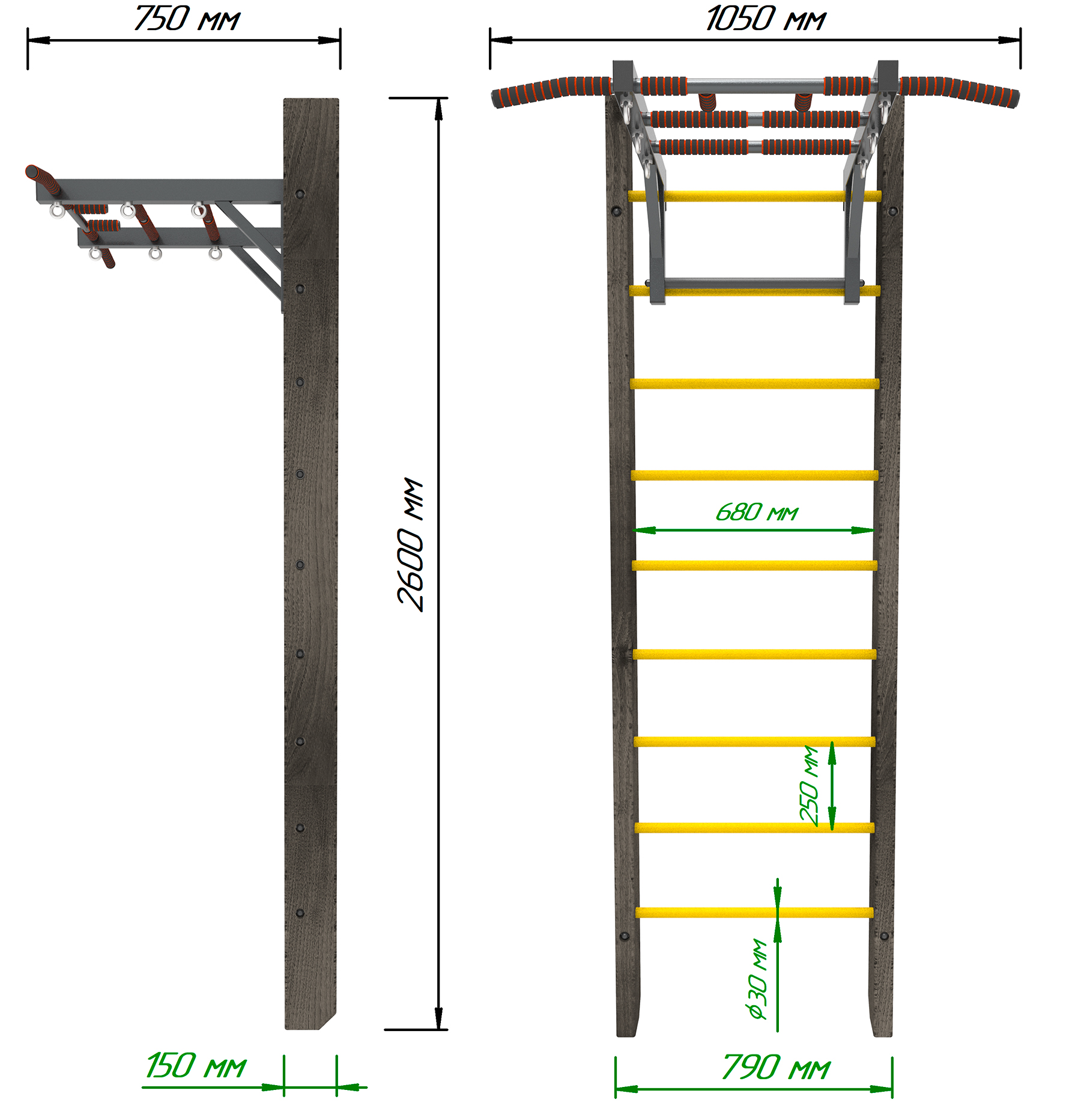 Усиленная шведская стенка. Подойдет как для взрослых так и для детей.