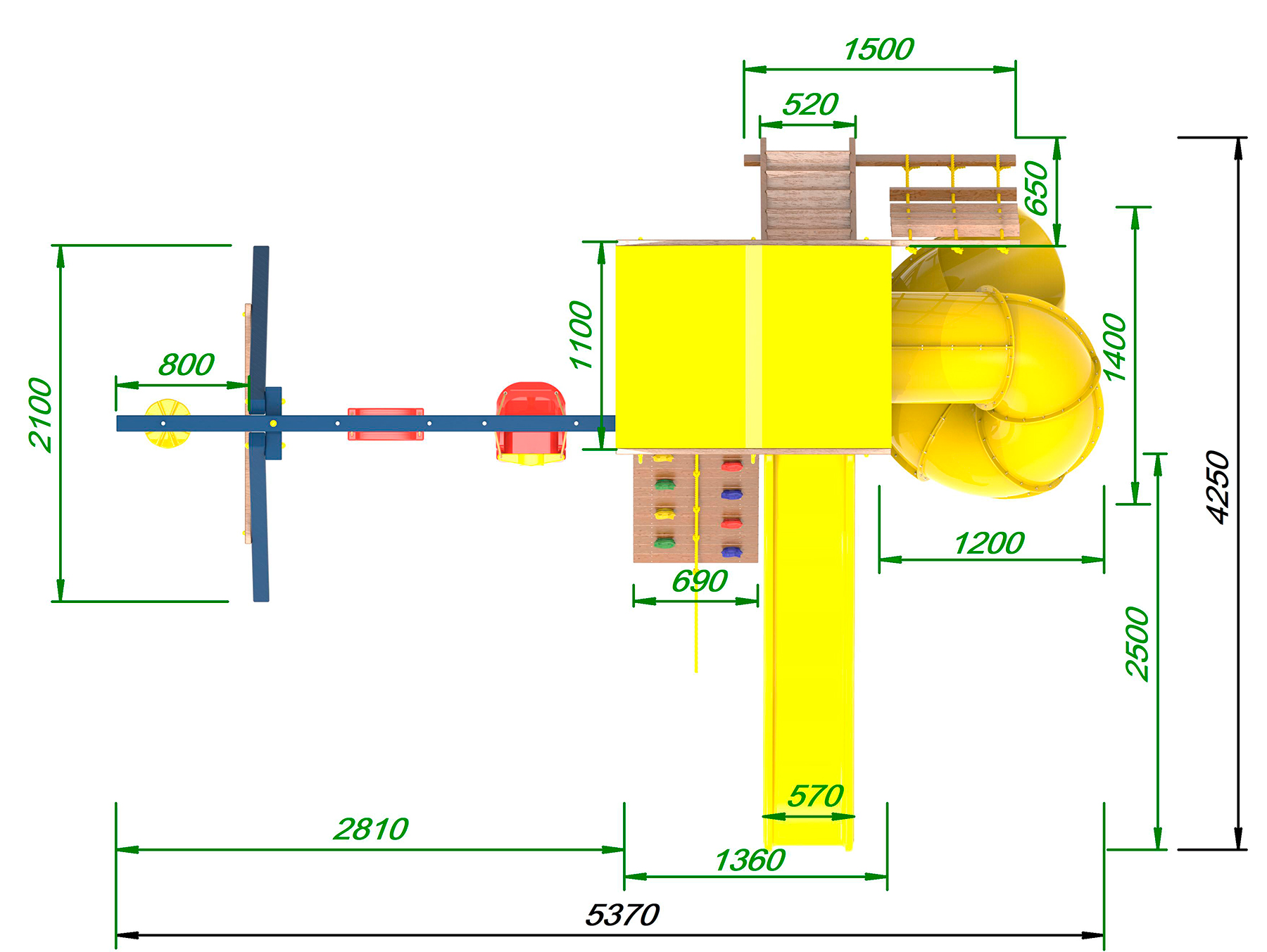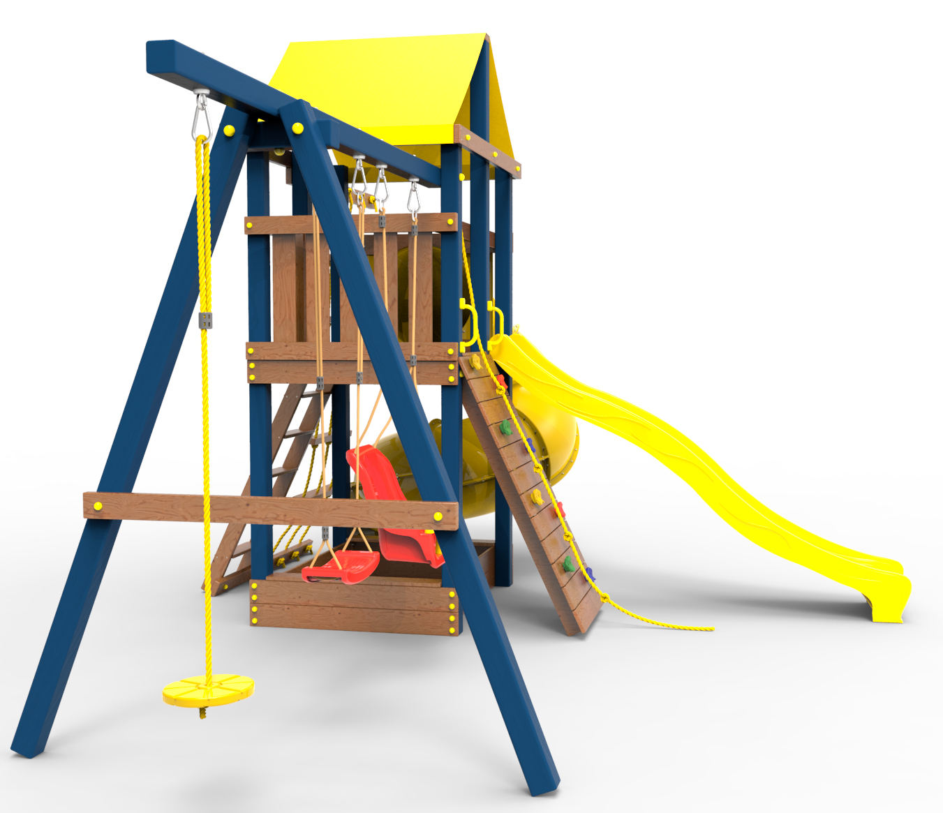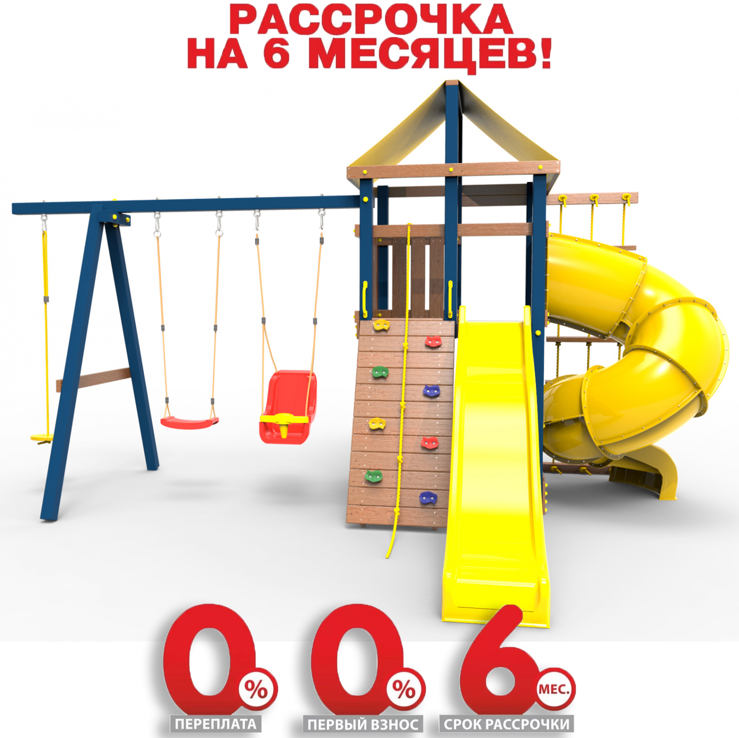 Обращаем Ваше внимание, что фактический цвет детской площадки может отличаться от представленных фото на сайте. Специфика окраски нетоксичными пропитками и красителями допускает отклонения в цветовой гамме отгружаемых изделий. Также обратите внимание, что фактический цвет может отличаться из-за цветопередачи устройства на котором Вы смотрите фото.