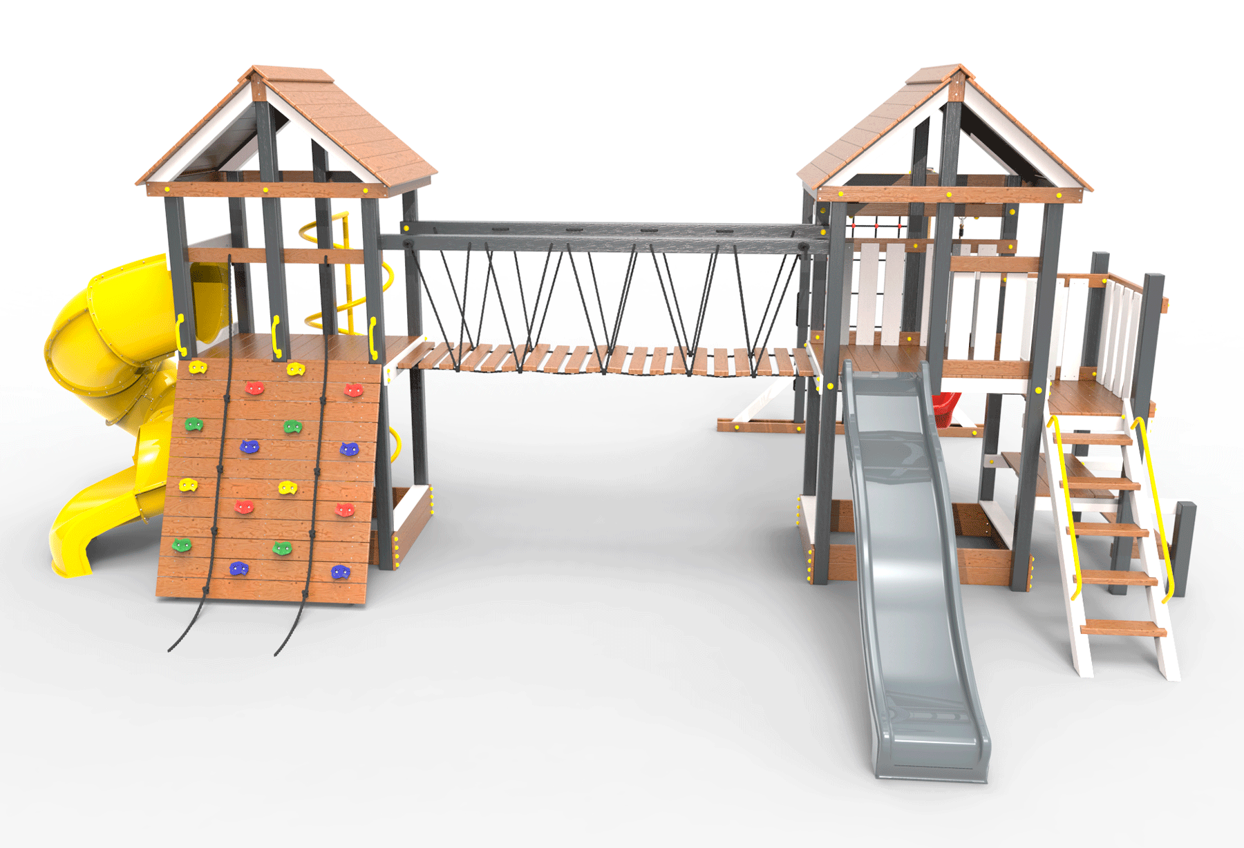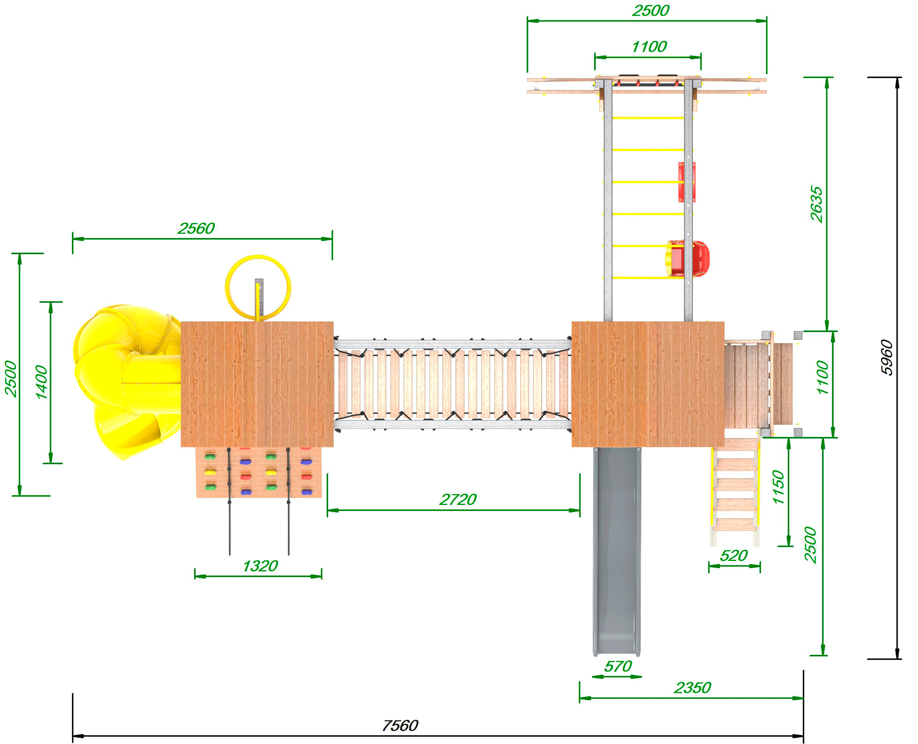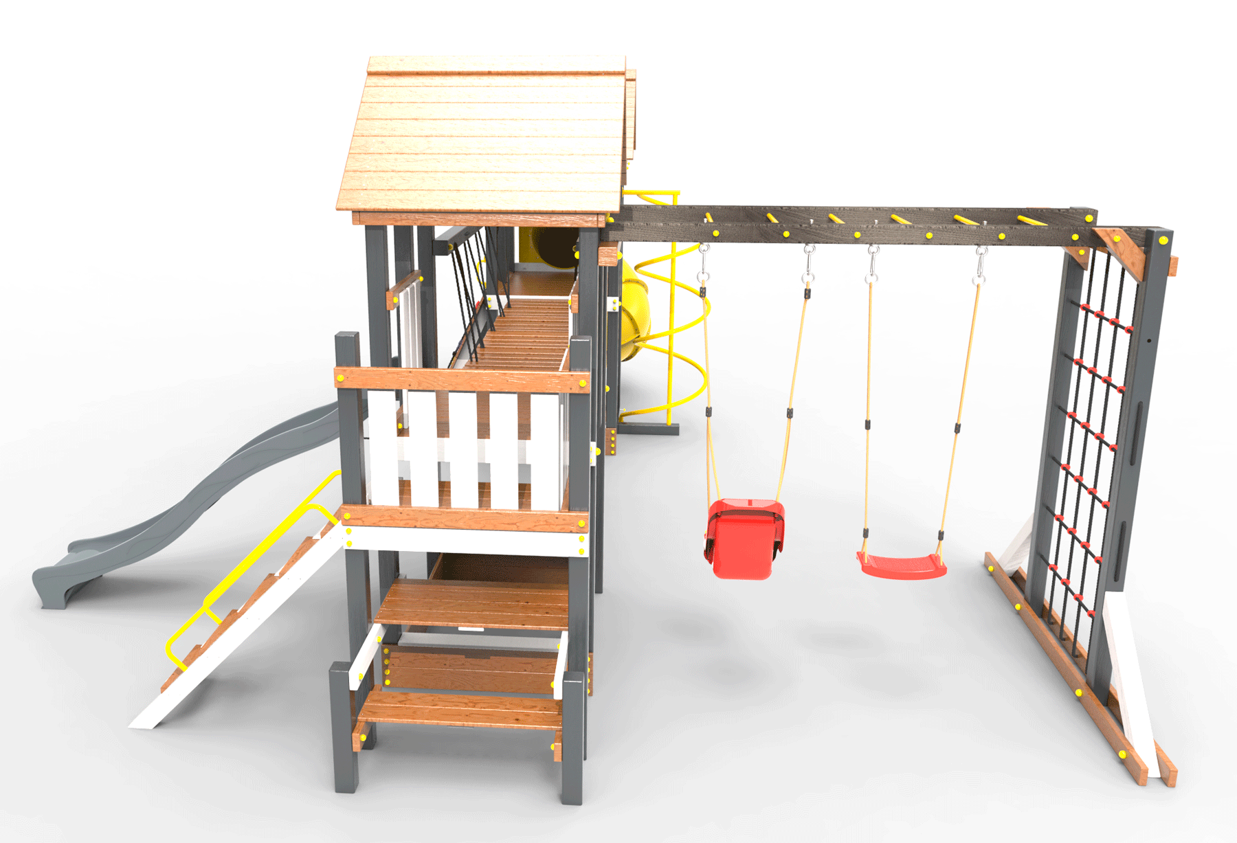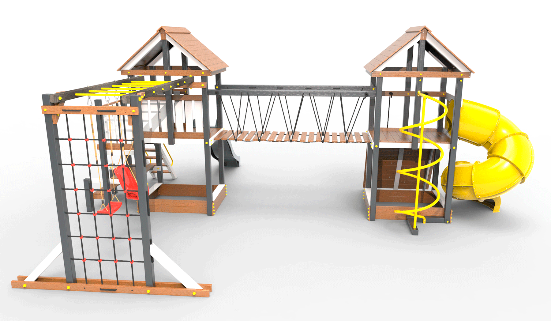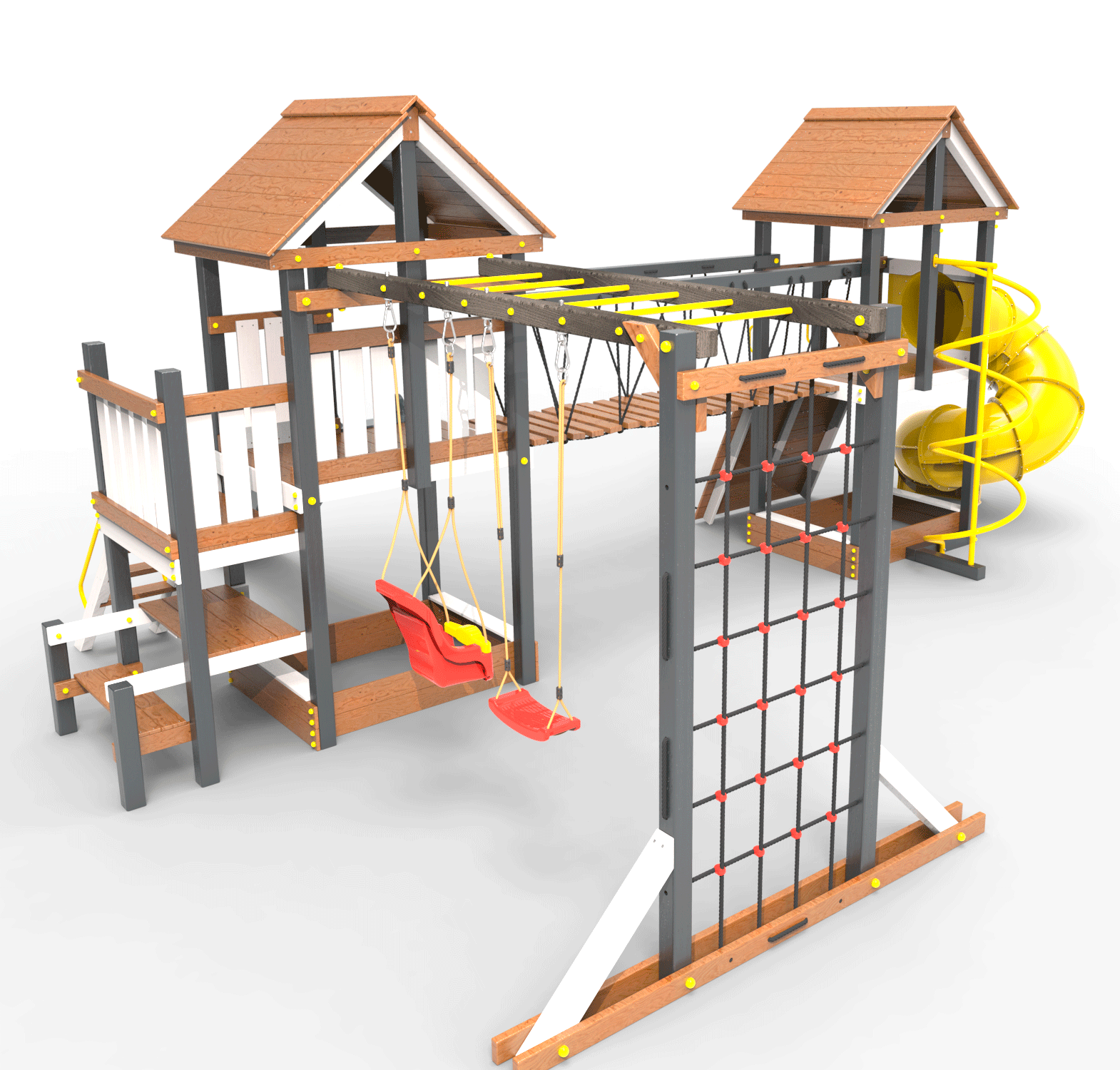 Обращаем Ваше внимание, что фактический цвет детской площадки может отличаться от представленных фото на сайте. Специфика окраски нетоксичными пропитками и красителями допускает отклонения в цветовой гамме отгружаемых изделий. Также обратите внимание, что фактический цвет может отличаться из-за цветопередачи устройства на котором Вы смотрите фото. Производитель оставляет за собой право менять цвет отдельных деталей и комплектующих(включая пластик, канаты и пр.), при этом сохраняя весь функционал и характеристики товара.