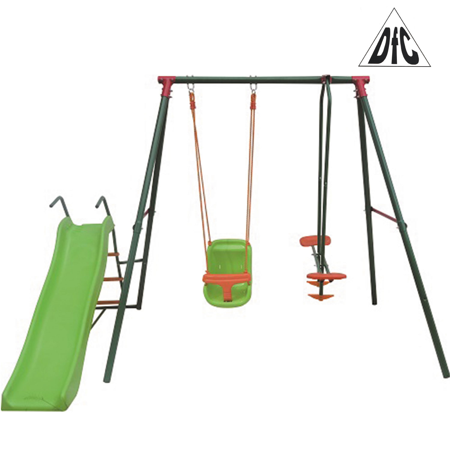 Спускной желоб и сидение качелей изготовлены из пластика.