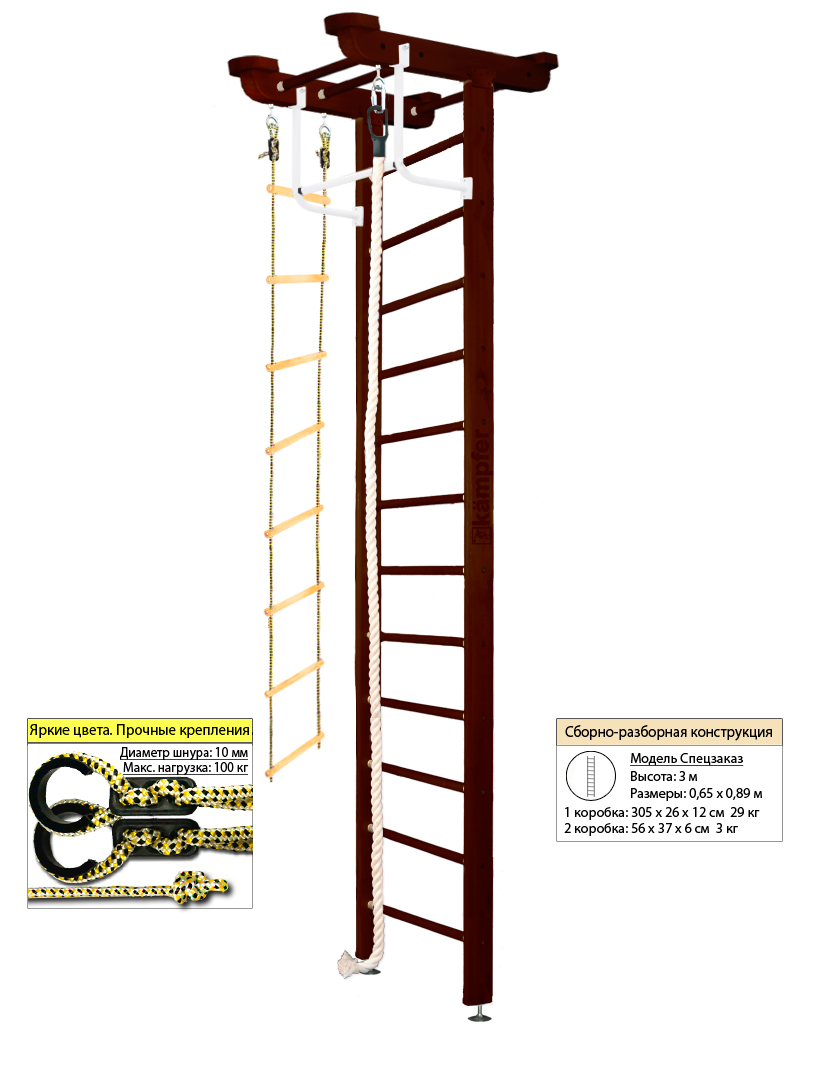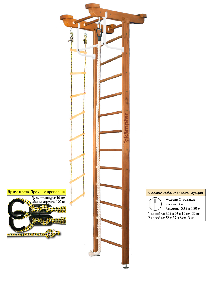 Комплектация: шведская стенка,  канат,  верёвочная лестница,