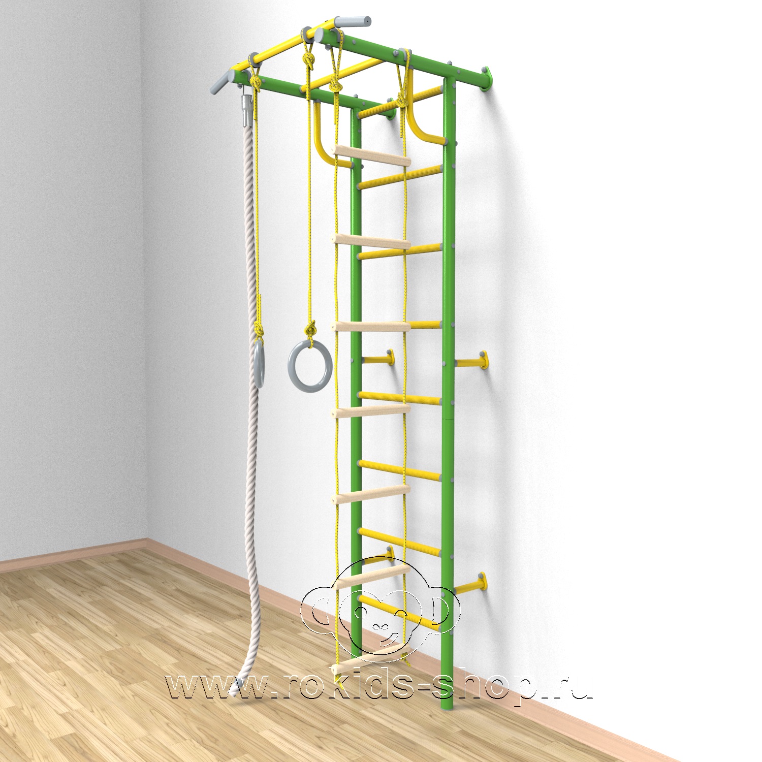 • Комплектация: кольца гимнастические, канат, лестница веревочная