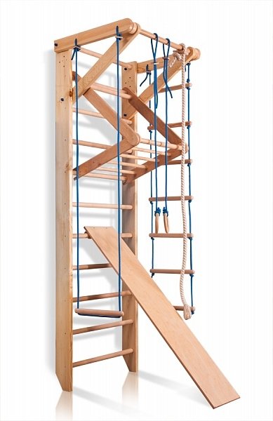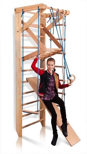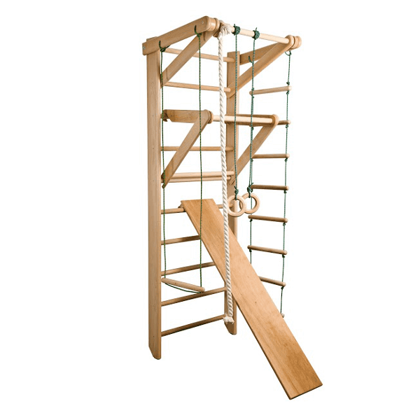 • Комплектация шведская стенка с турником / канат / пластиковые кольца / трапеция / веревочная лестница / детский съемный турник-рукоход / доска для пресса / крепежный комплект