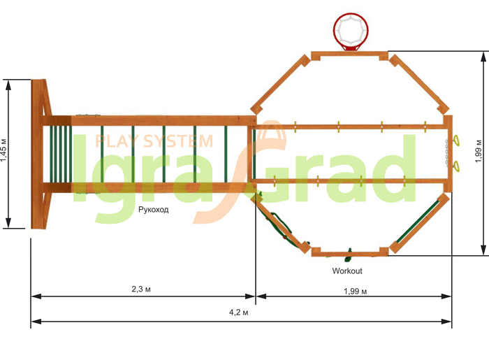 Спортивный комплекс для дачи "WorkOut с рукоходом" включает: