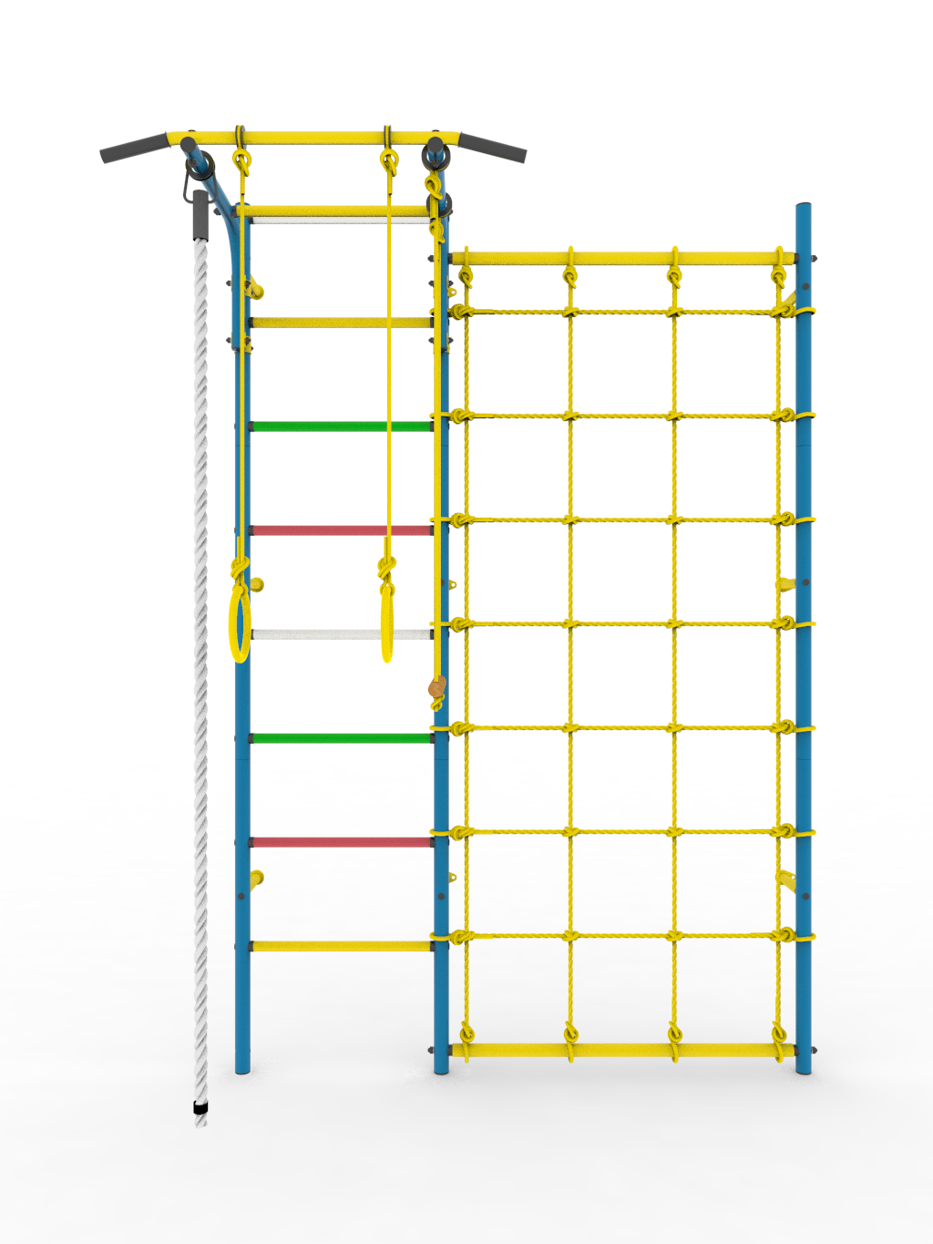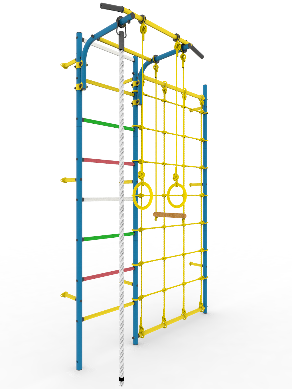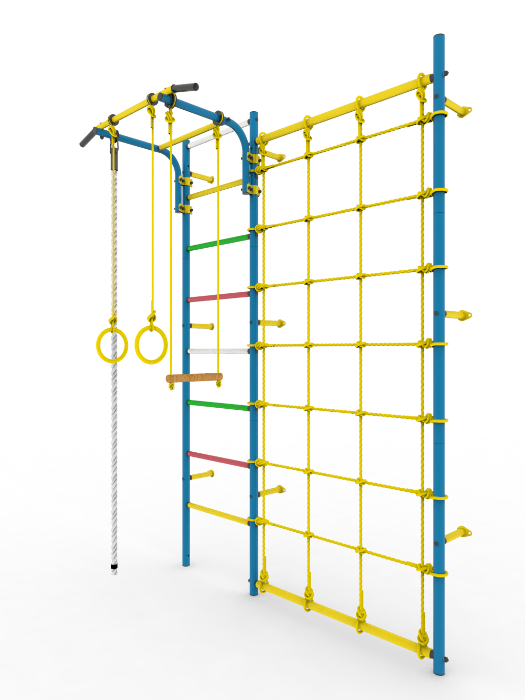 • Комплектация: турник (регулируемый по высоте), кольца гимнастические, канат, трапеция, сетка