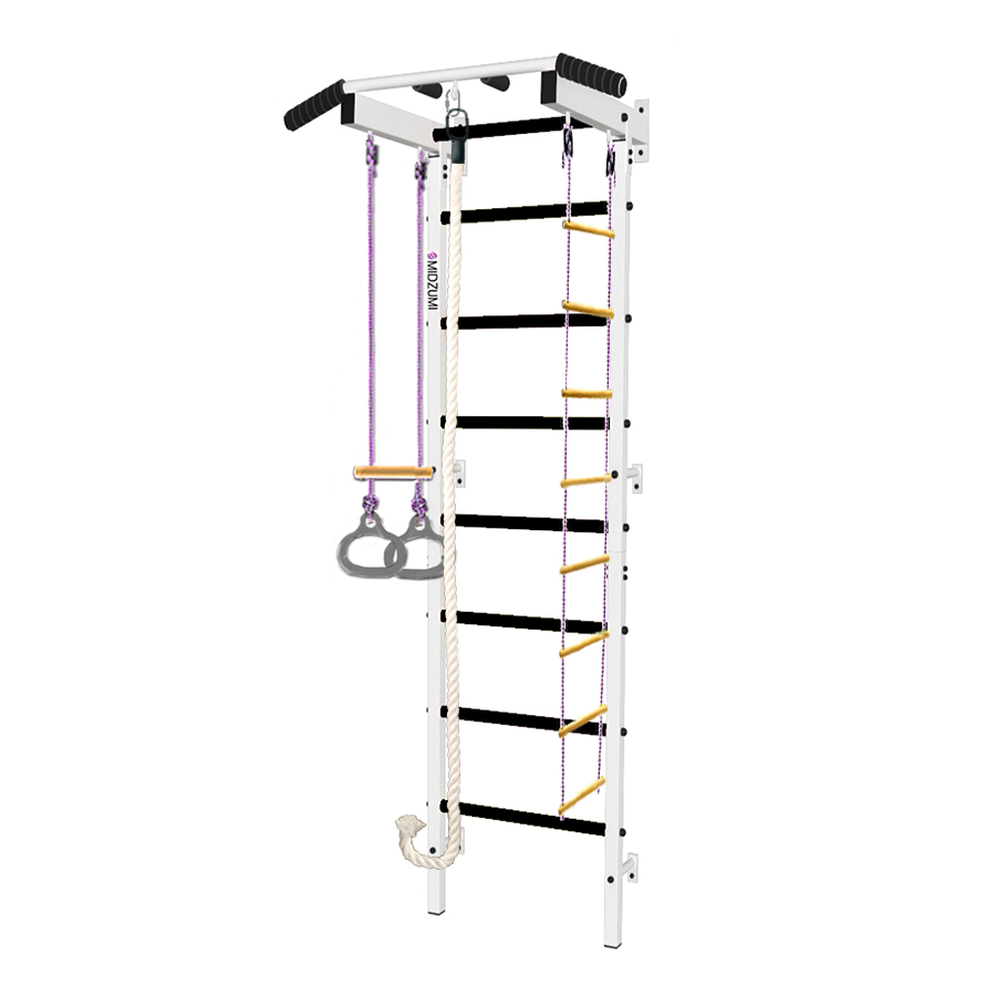 Модель из профессиональной серии Mdzumi это спортивный комплекс для всей семьи! Нейтральный белый цвет украсит интерьер и станет его незаменимой частью. Турник стационарный усиленной прочности с дополнительными креплениями для аксессуаров и снарядов (боксерская груша, TRX и пр.). Прорезиненные ступени предотвращают скольжение и создают приятные ощущения. Прочная металлическая конструкция позволяет выдерживать до 250 кг. Рассчитан в первую очень на занятия взрослому, но возможно заниматься и ребенку.