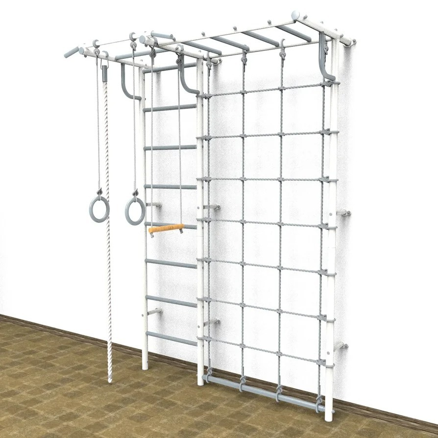 шведская стенка, турник неподвижный, кольца гимнастические, трапеция, канат, рукоход, сетка для лаза