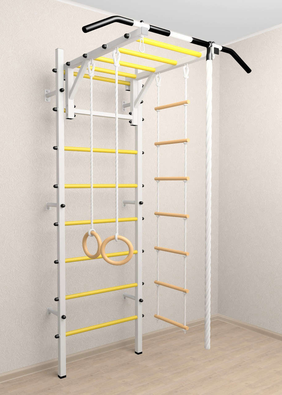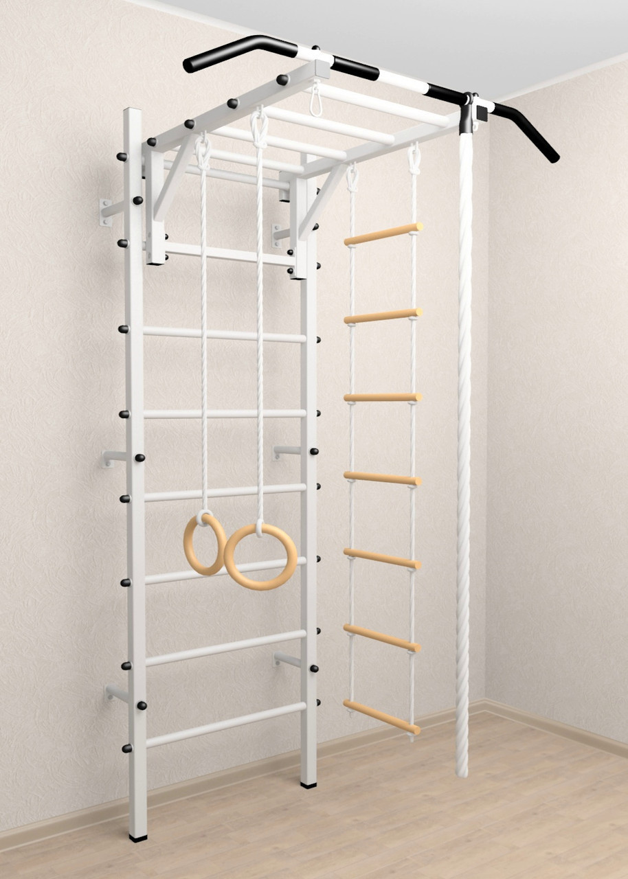 • Комплект: канат с крепежом, кольца гимнастические деревянные, лестница веревочная