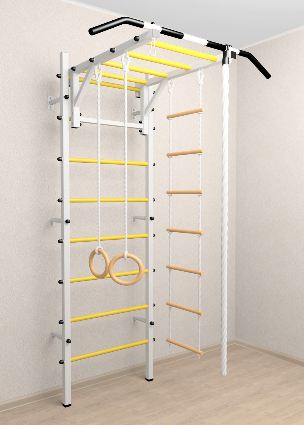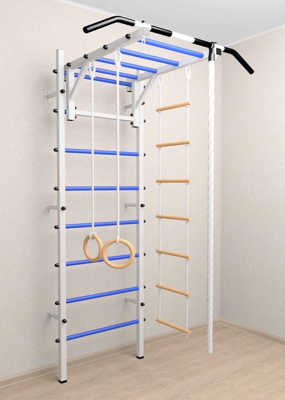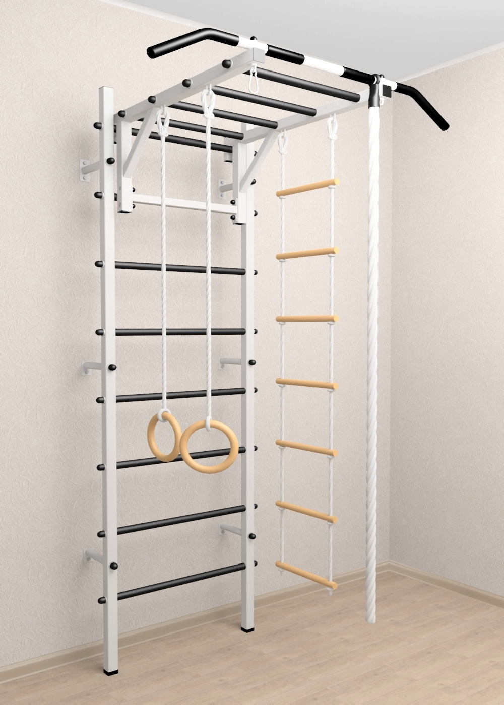 Стойки шведской стенки Sv Sport усиленные изготовлены из профильной трубы 60 х 40 х 2 мм. Ступени изготовлены из круглой, стальной трубы, покрытой резиной (не скользят, не натирают мозоли, не прокручиваются, не имеют запаха, приятны на ощупь). Устанавливается к стене при помощи 6 кронштейнов. На перекладину, в местах хватов, одеты резиновые ручки.
