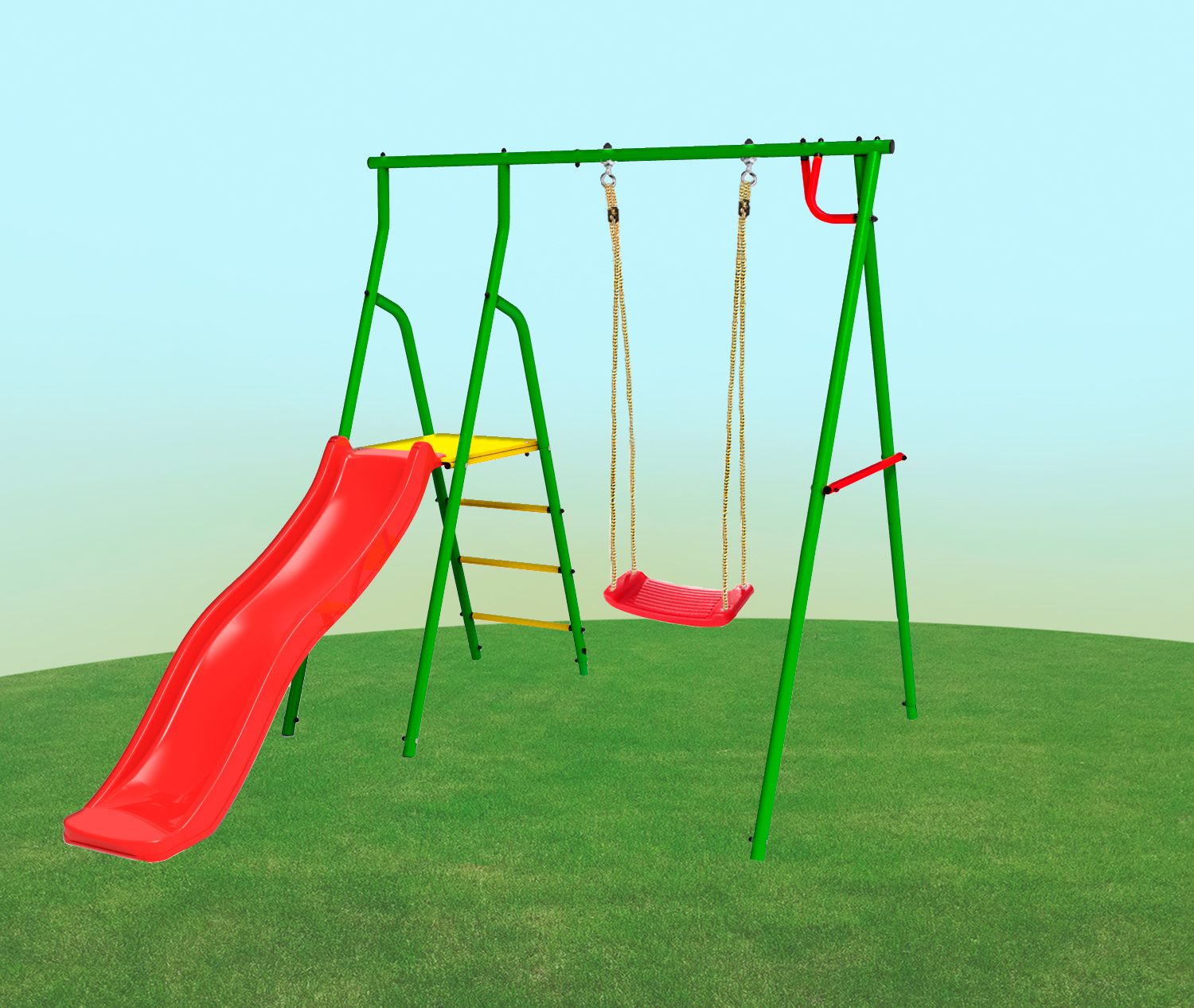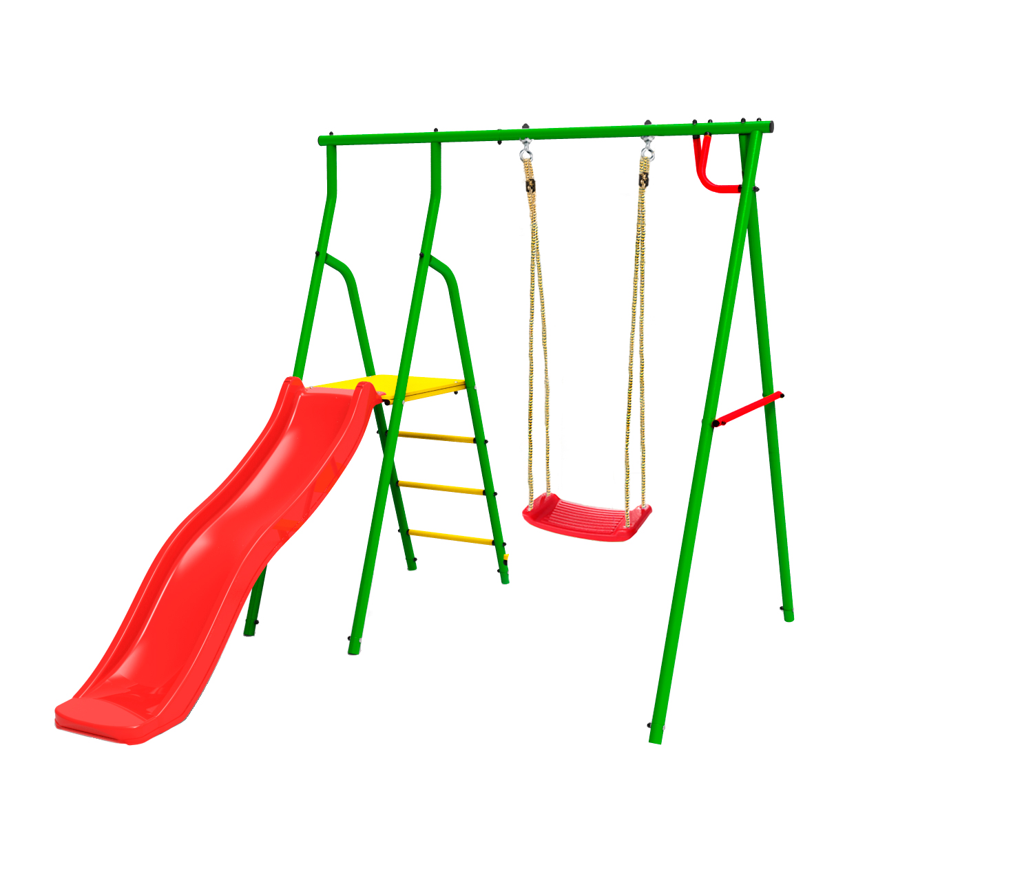 — Комплектация: горка пластиковая 1,6 м, пластиковые качели без спинки