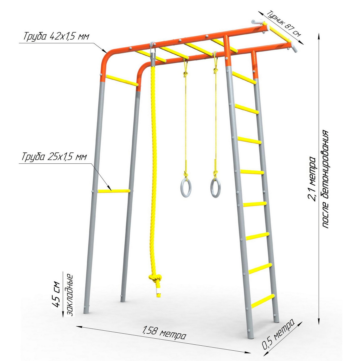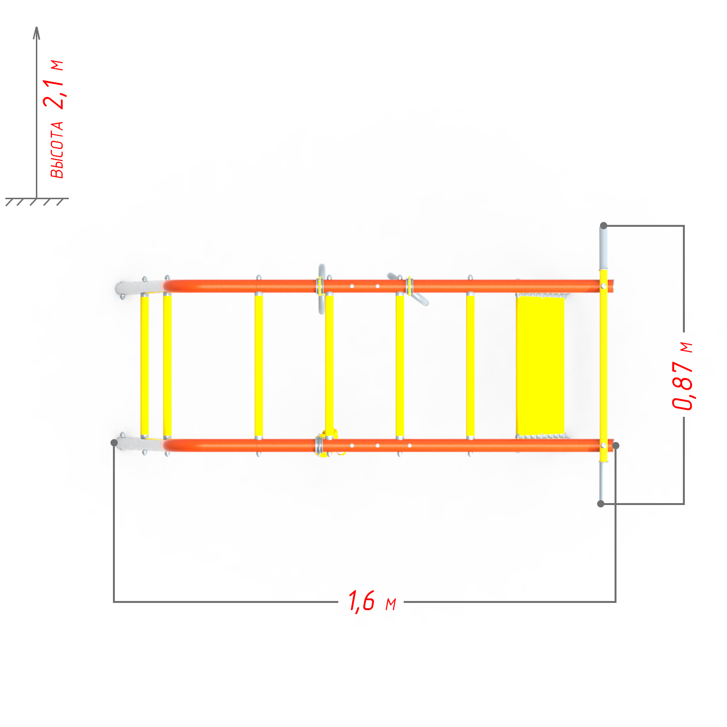 Этот летский спорткомплекс представляет собой достаточно компактную конструкцию, для размещения которой на участке понадобится совсем мало места. Достаточно лишь найти ровный и свободный прямоугольный участок земли размером всего 0,87 х 1,6 метра.