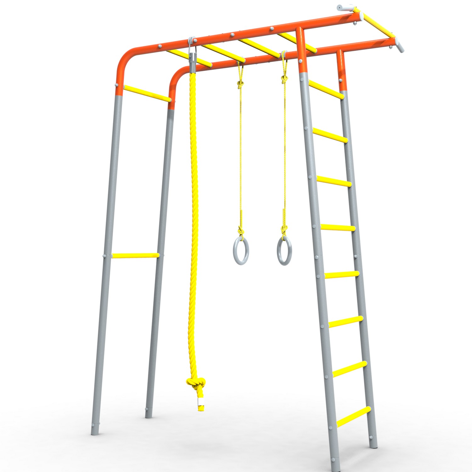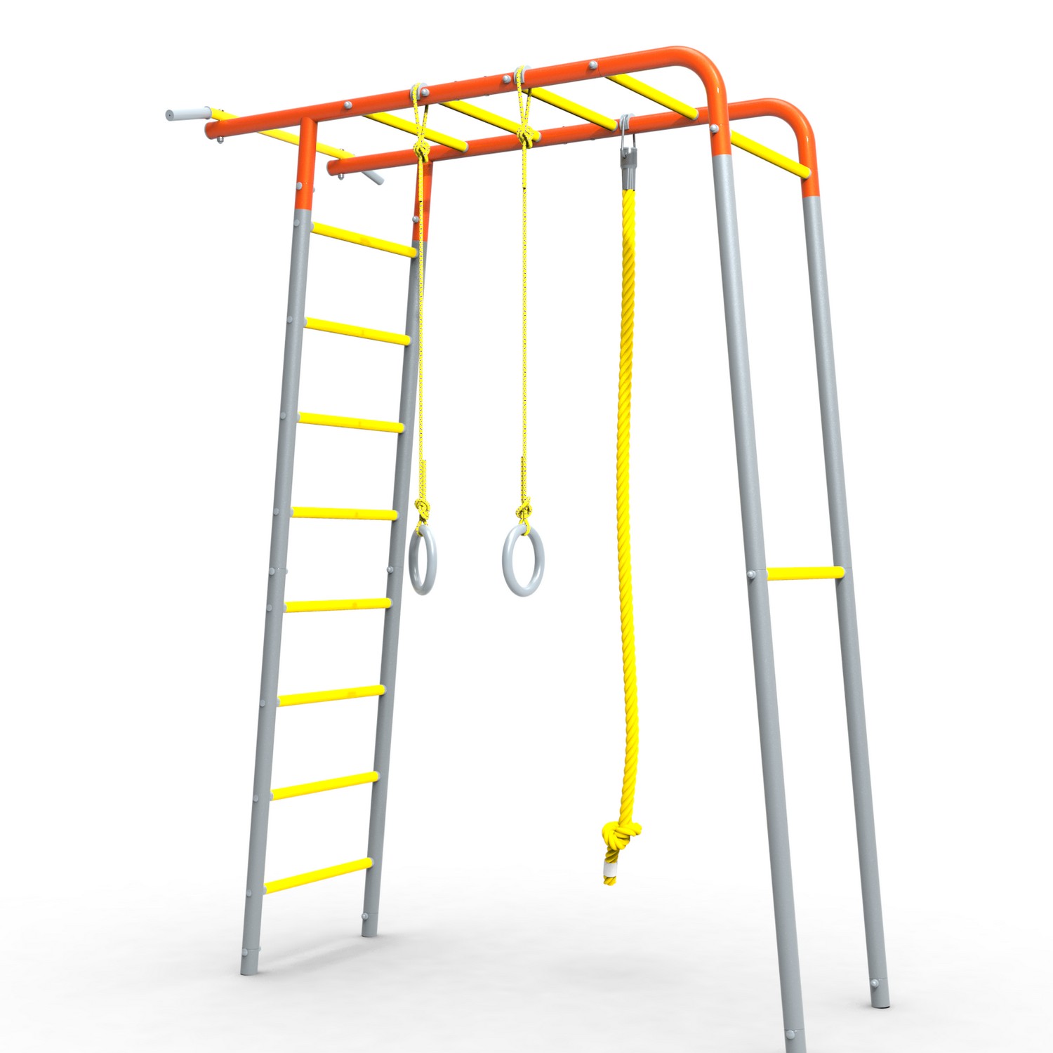 В комплектацию УДСК "Тарзан" входит: рукоход, турник, канат, кольца гимнастические, ПВХ ступени.