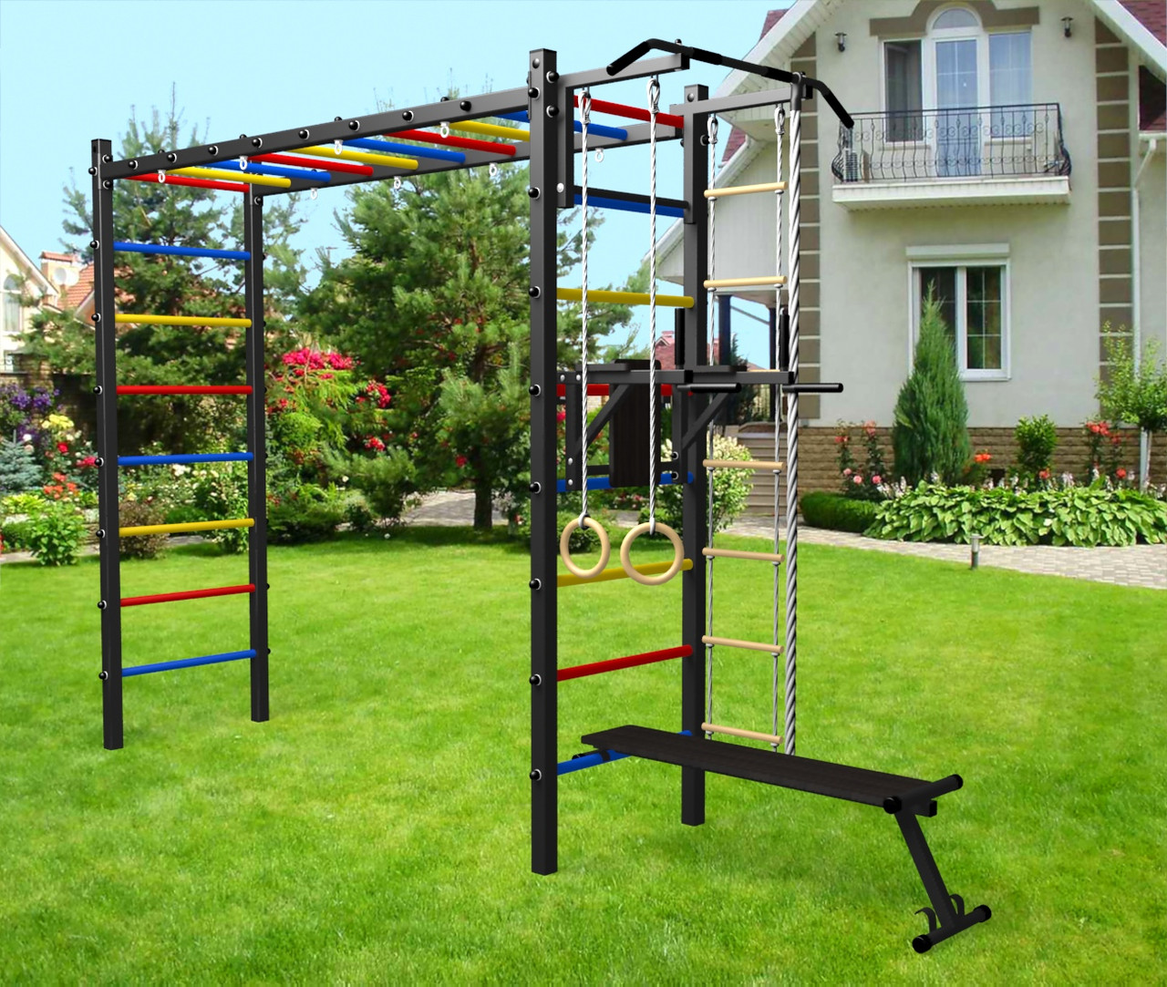- Цвет покраски: черный; Цвет фурнитуры: черный; Цвет ступеней: черный, разноцветный, синий, желтый, красный, белый.