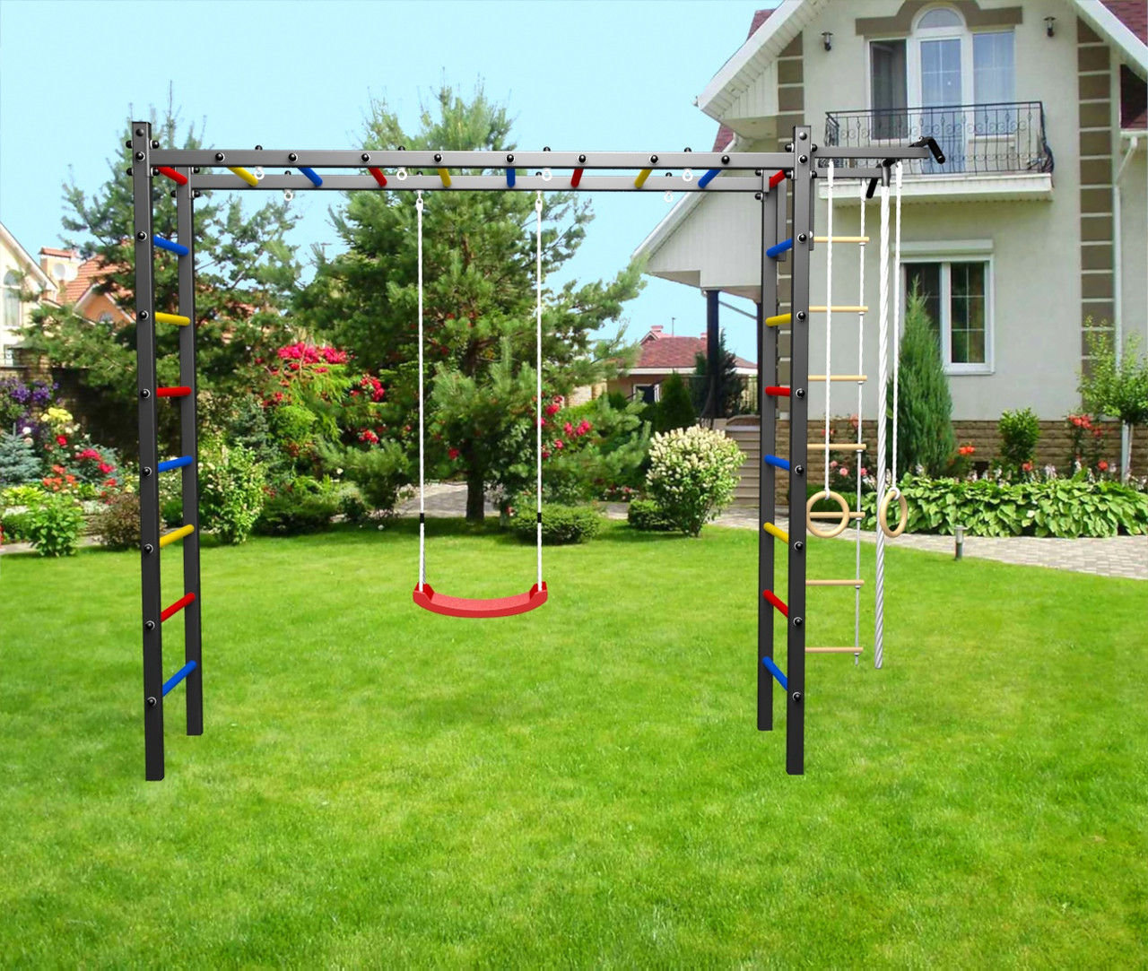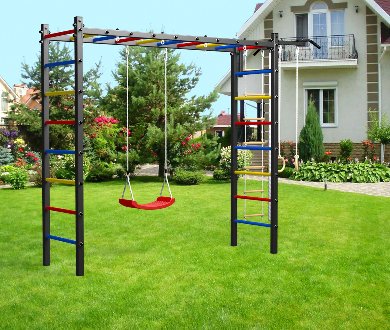картинка Уличная шведская стенка Sv Sport рукоход У514 (Турник/"Лодочка"/Канат/кольца/лестница) от магазина Лазалка