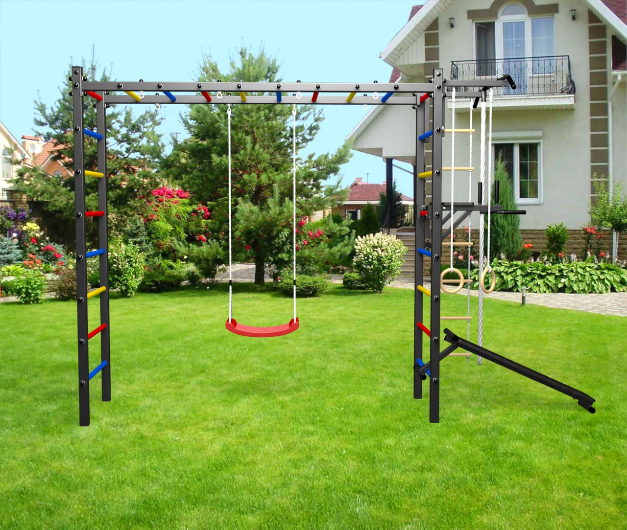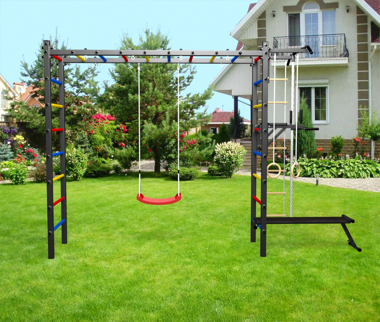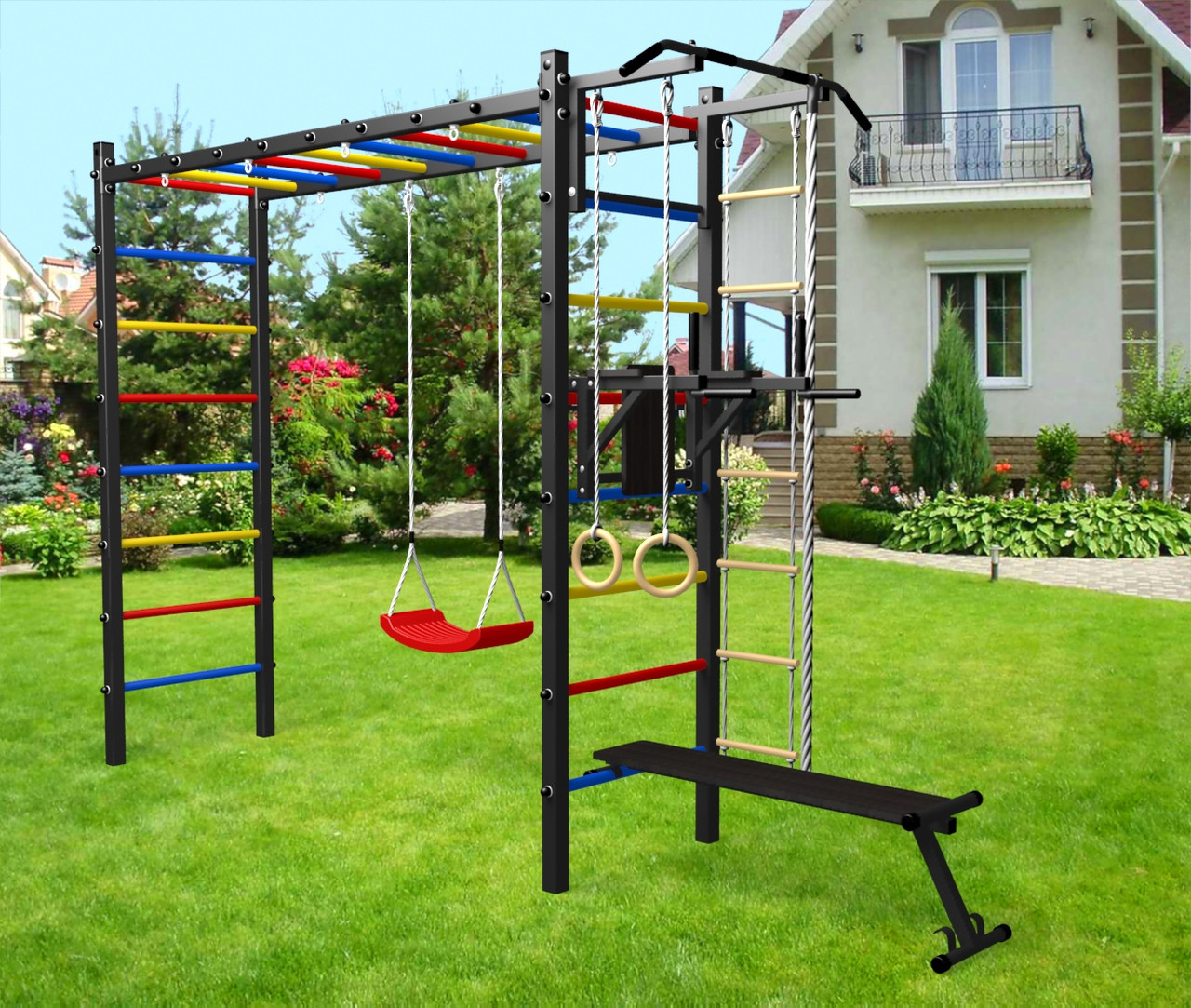 - Цвет покраски: черный; Цвет фурнитуры: черный; Цвет ступеней: черный, разноцветный, синий, желтый, красный, белый.