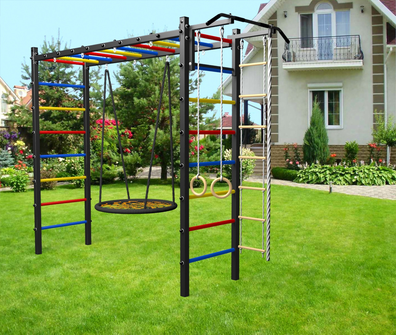 - Цвет покраски: черный; Цвет фурнитуры: черный; Цвет ступеней: черный, разноцветный, синий, желтый, красный, белый.