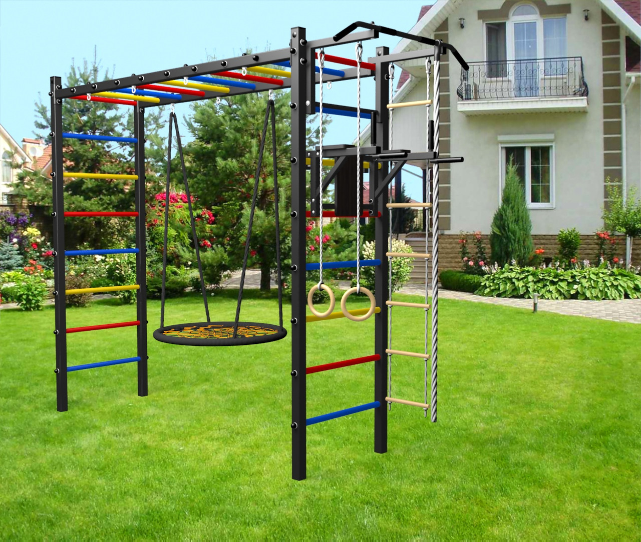 - Цвет покраски: черный; Цвет фурнитуры: черный; Цвет ступеней: черный, разноцветный, синий, желтый, красный, белый.
