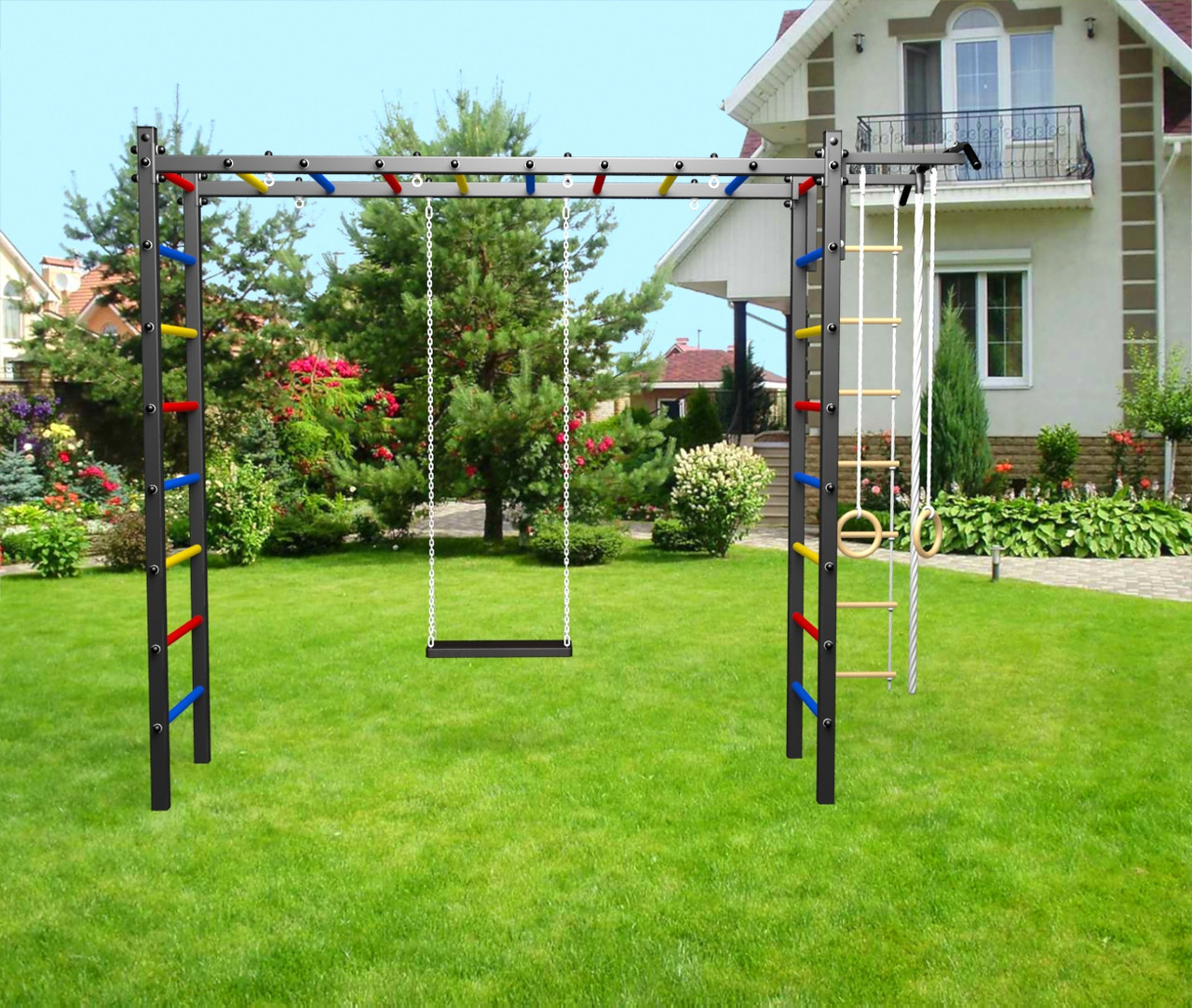 • Цвет покраски: черный; Цвет фурнитуры: черный; Цвет ступеней: черный, разноцветный, синий, желтый, красный, белый.