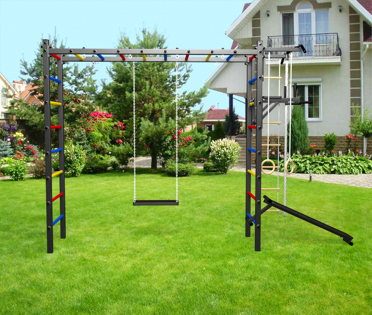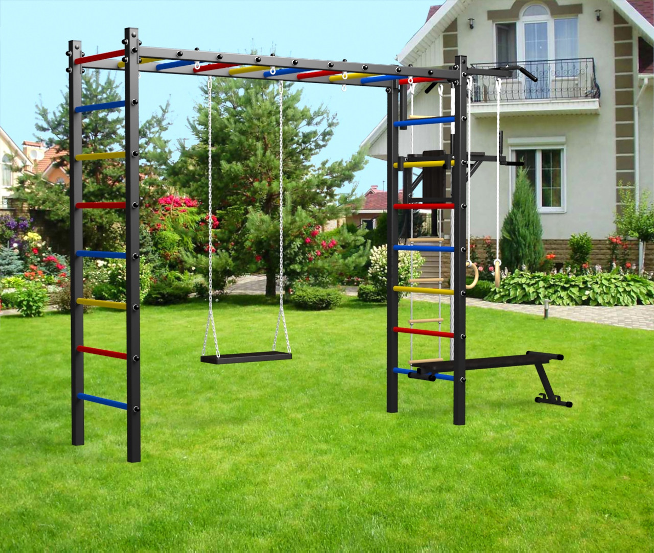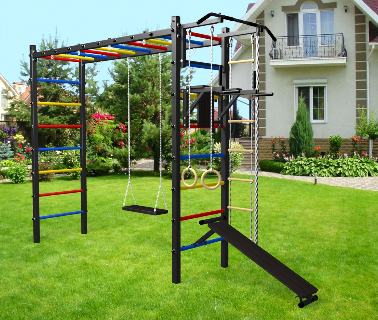 - Цвет покраски: черный; Цвет фурнитуры: черный; Цвет ступеней: черный, разноцветный, синий, желтый, красный, белый.
