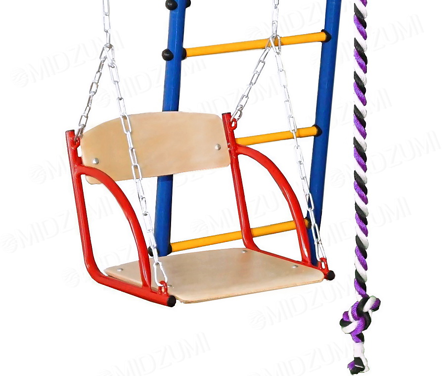 — Комплектация: каркас из металлических лестниц с рукоходом, турник, качели, канат, кольца с перекладиной.