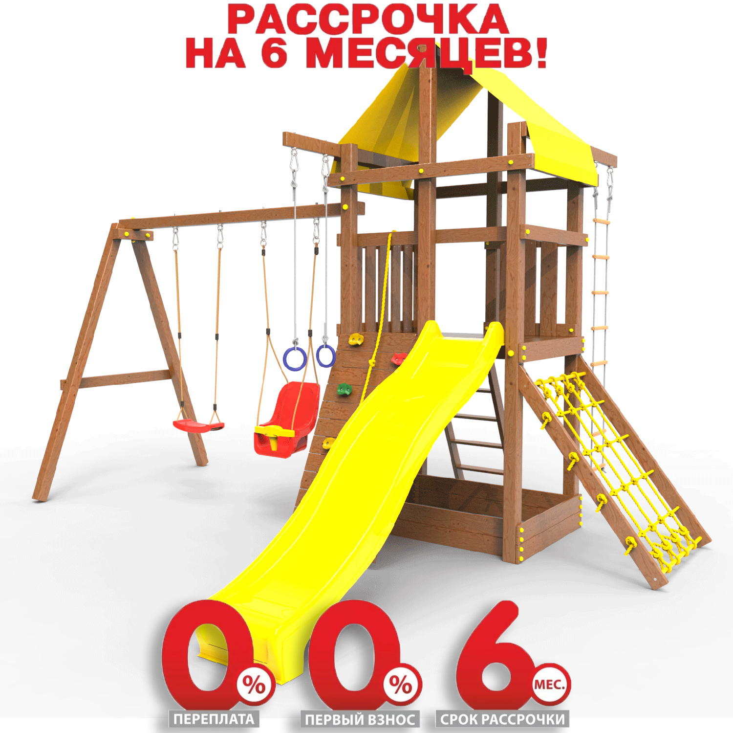 Обращаем Ваше внимание, что фактический цвет детской площадки может отличаться от представленных фото на сайте. Специфика окраски нетоксичными пропитками и красителями допускает отклонения в цветовой гамме отгружаемых изделий. Также обратите внимание, что фактический цвет может отличаться из-за цветопередачи устройства на котором Вы смотрите фото.