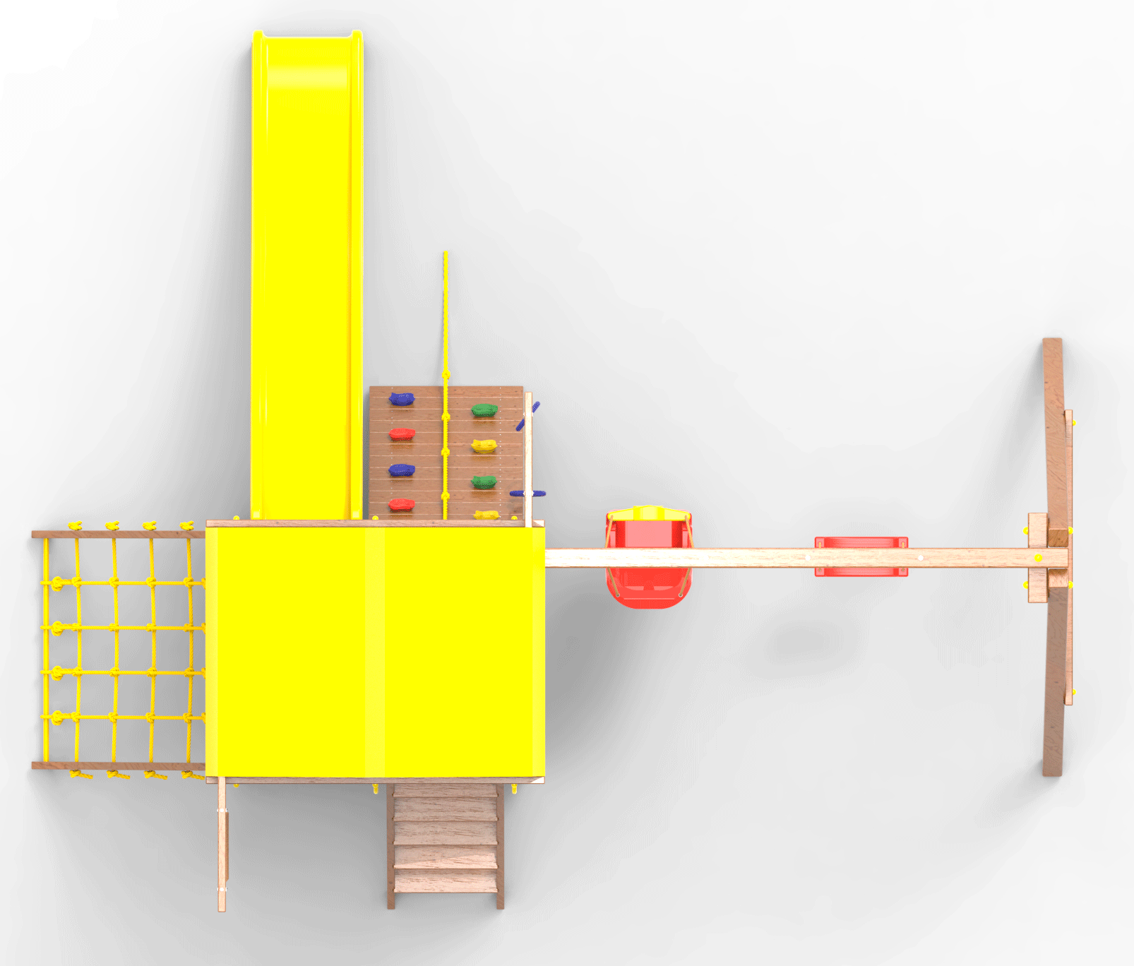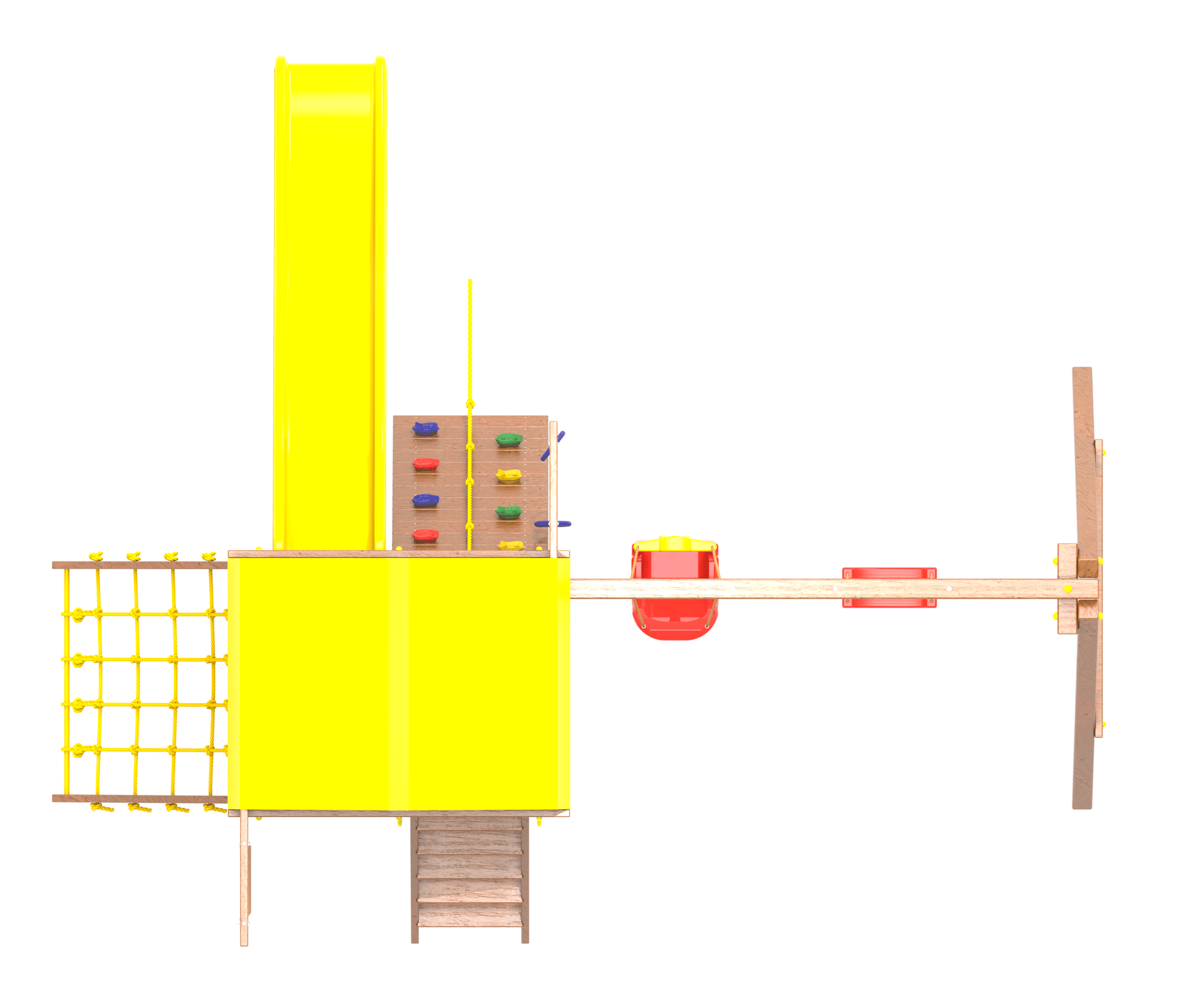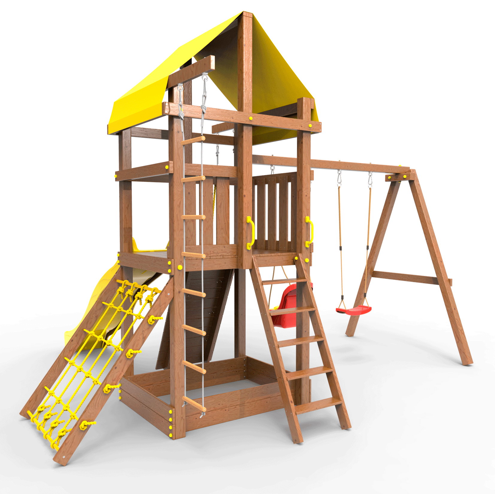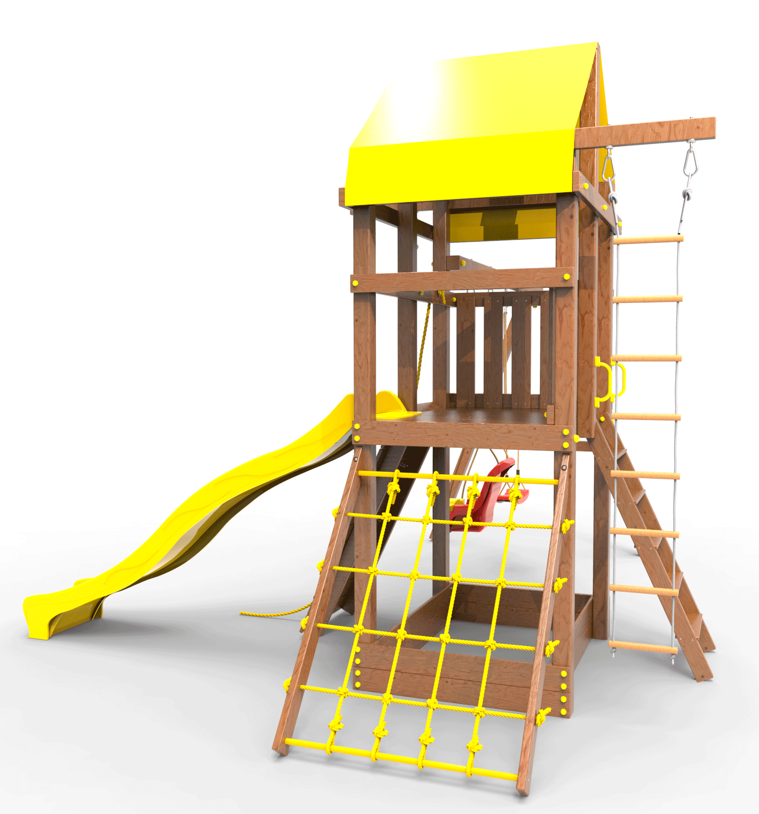 Все столбы и качельная балка площадки выполнена из высокопрочного клеёного бруса камерной сушки сечением 90х90мм.