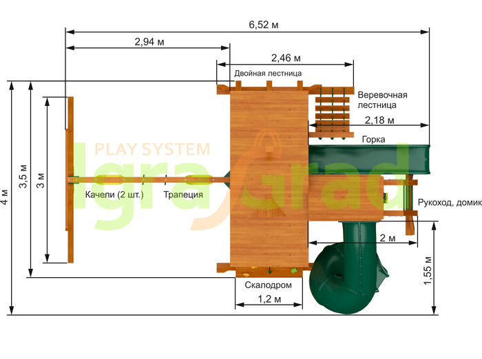 Габариты игрового комплекса для детей составляют: