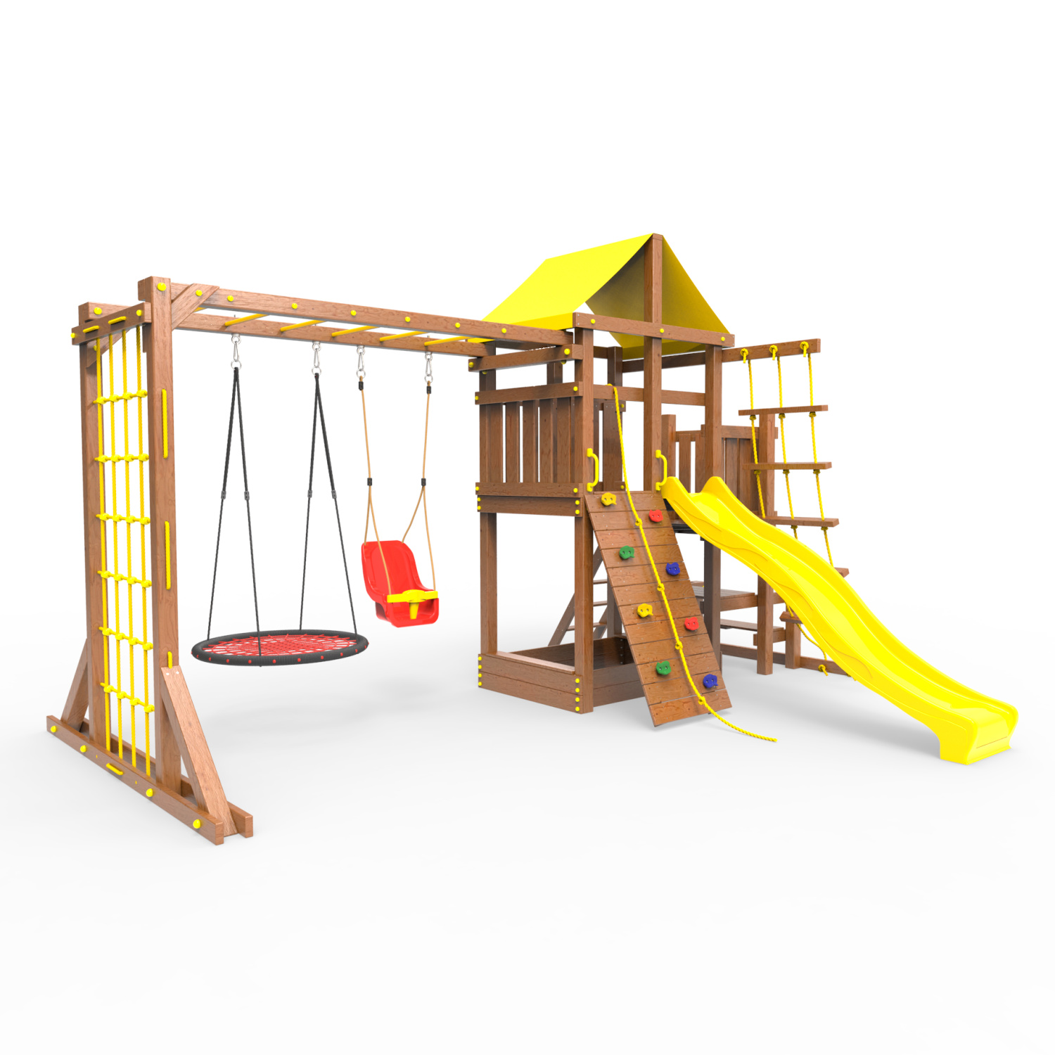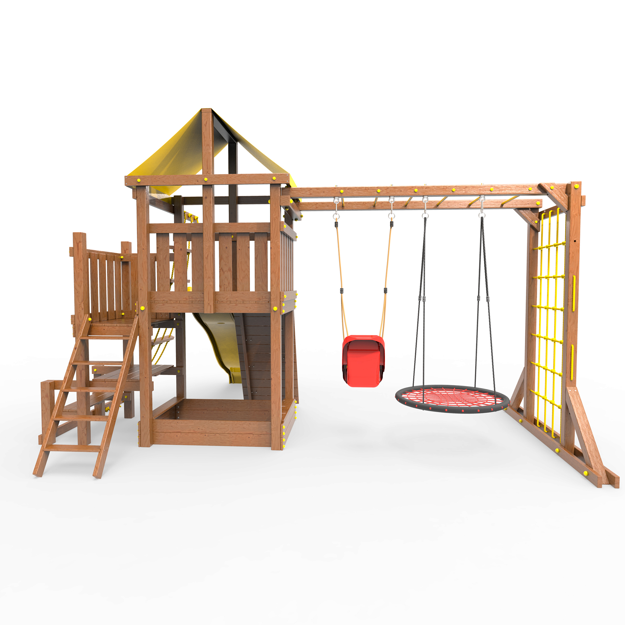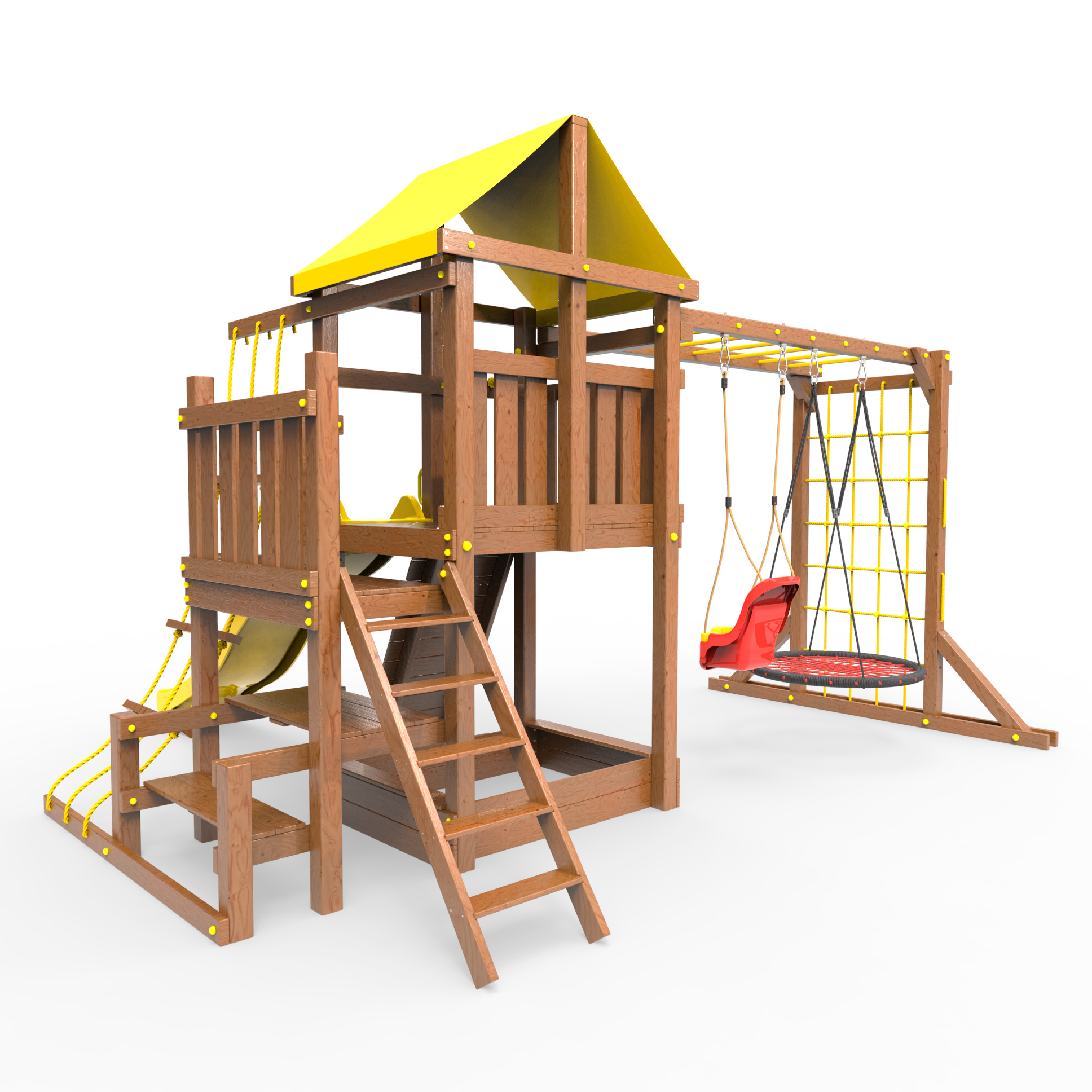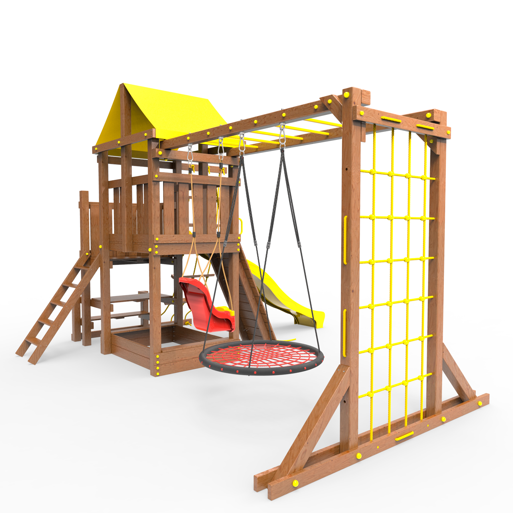 | Комплектация | Домик|Песочница|Лестница|Шторм-трап|Скалодром|Балкон|Столик с лавочками|Горка|Качели|Рукоход|Руфер|Сеть для лазания |