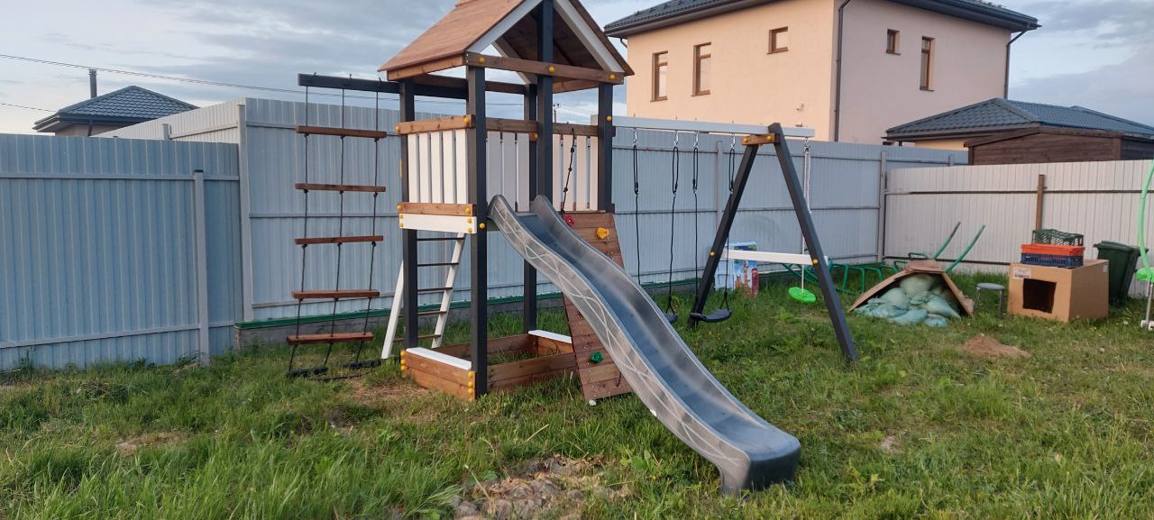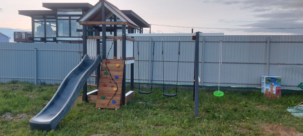 Обращаем Ваше внимание, что фактический цвет детской площадки может отличаться от представленных фото на сайте. Специфика окраски нетоксичными пропитками и красителями допускает отклонения в цветовой гамме отгружаемых изделий. Также обратите внимание, что фактический цвет может отличаться из-за цветопередачи устройства на котором Вы смотрите фото.