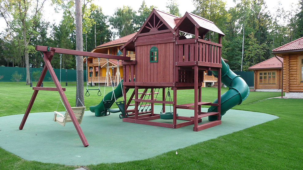Площадка Playnation «Горный дом Делюкс» изготовлена из красного дерева (секвойи) и кедра.