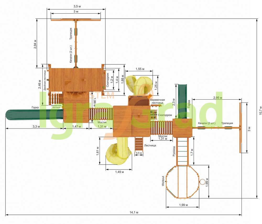 - горка: 300*500*2900, 2 шт., 44,00 кг. (транспортировка только в жёсткой упаковке!)