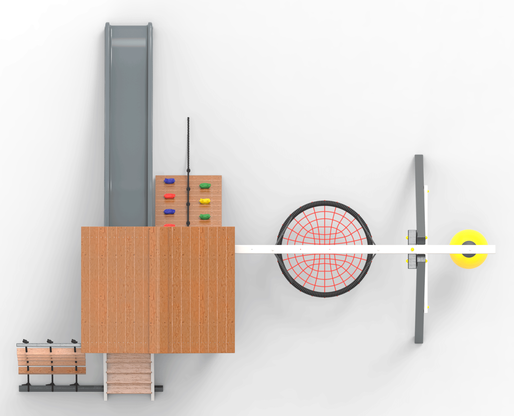 Площадка оснащена горкой из бельгийского пластика с длиной ската в целых 2900мм и возможностью подключения к ней воды.