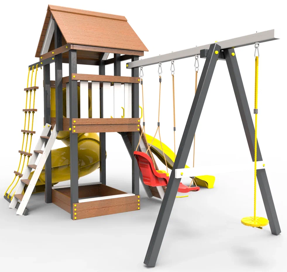 Обращаем Ваше внимание, что фактический цвет детской площадки может отличаться от представленных фото на сайте. Специфика окраски нетоксичными пропитками и красителями допускает отклонения в цветовой гамме отгружаемых изделий. Также обратите внимание, что фактический цвет может отличаться из-за цветопередачи устройства на котором Вы смотрите фото.