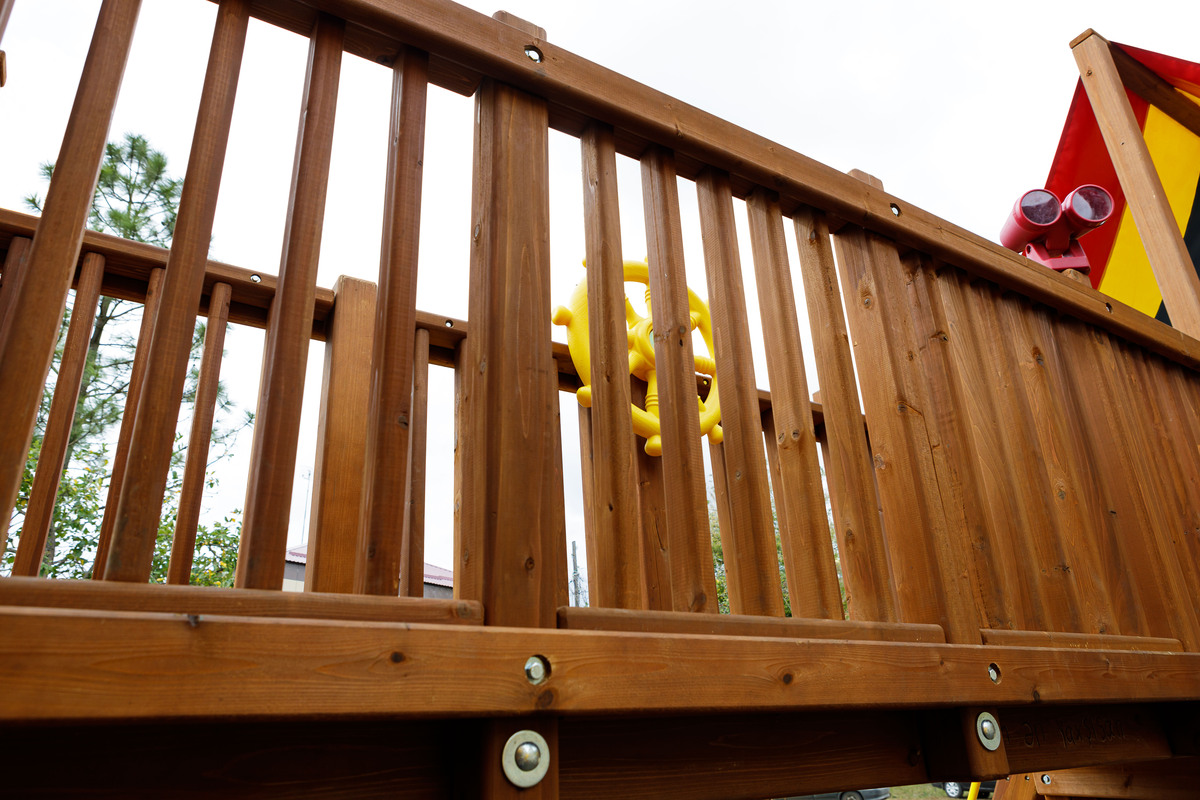 • Встроенный столик для пикника со скамеечками под игровым домиком