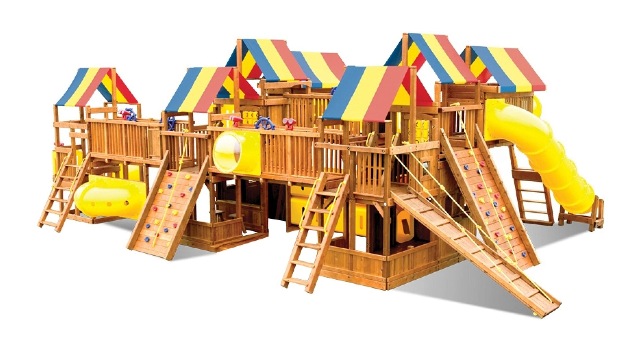 Детский игровой комплекс Мегаполис является самым большим из всей продукции Rainbow Play Systems. Мегаполис представляет собой многообразие игровых зон, их так много, что идеи для игр у детей никогда не иссякнут. Данный комплекс считается одним из лучших в мире по соотношению цена/качество и эргономичности конструкции. Данный комплекс подходит для установки в парках, дворах ЖК, скверах и зонах повышенного спроса у семей с детьми. Также были случаи установок частным клиентам в загородные коттеджы. В Мегаполисе используется только первый сорт дерева кедра. Дерево проходит много ступенчатую термообработку влагоустойчивыми антисептиками. Срок службы дерева не ограничен. Мегаполис обязательно станет визитной карточкой места, где будет установлен!