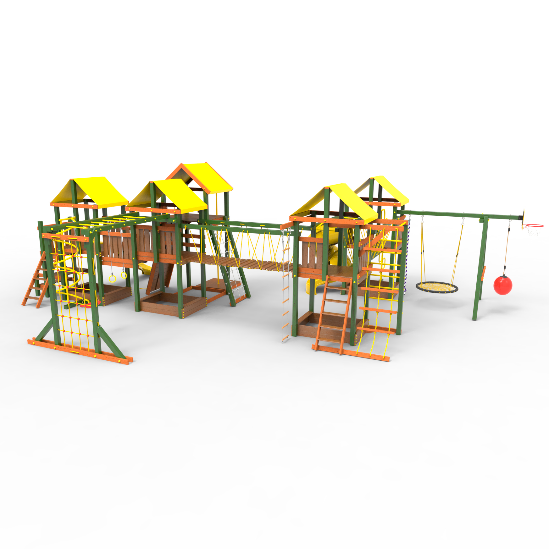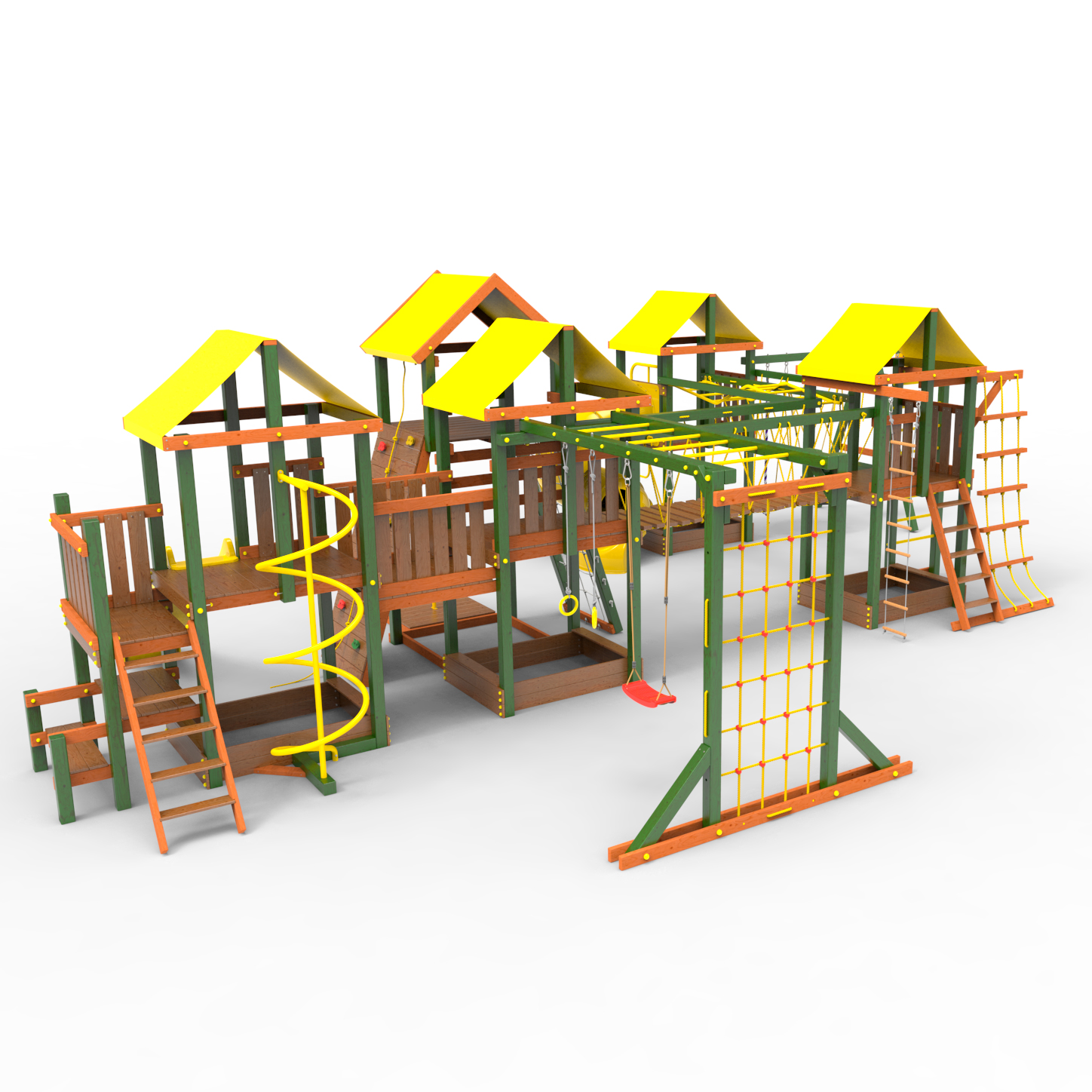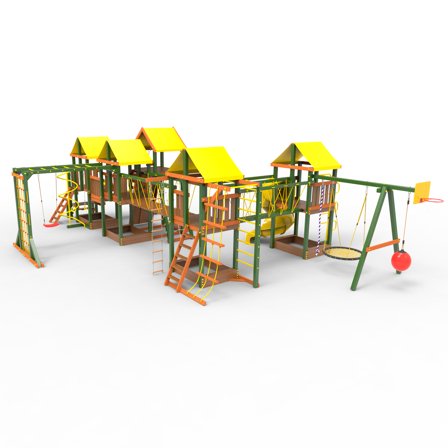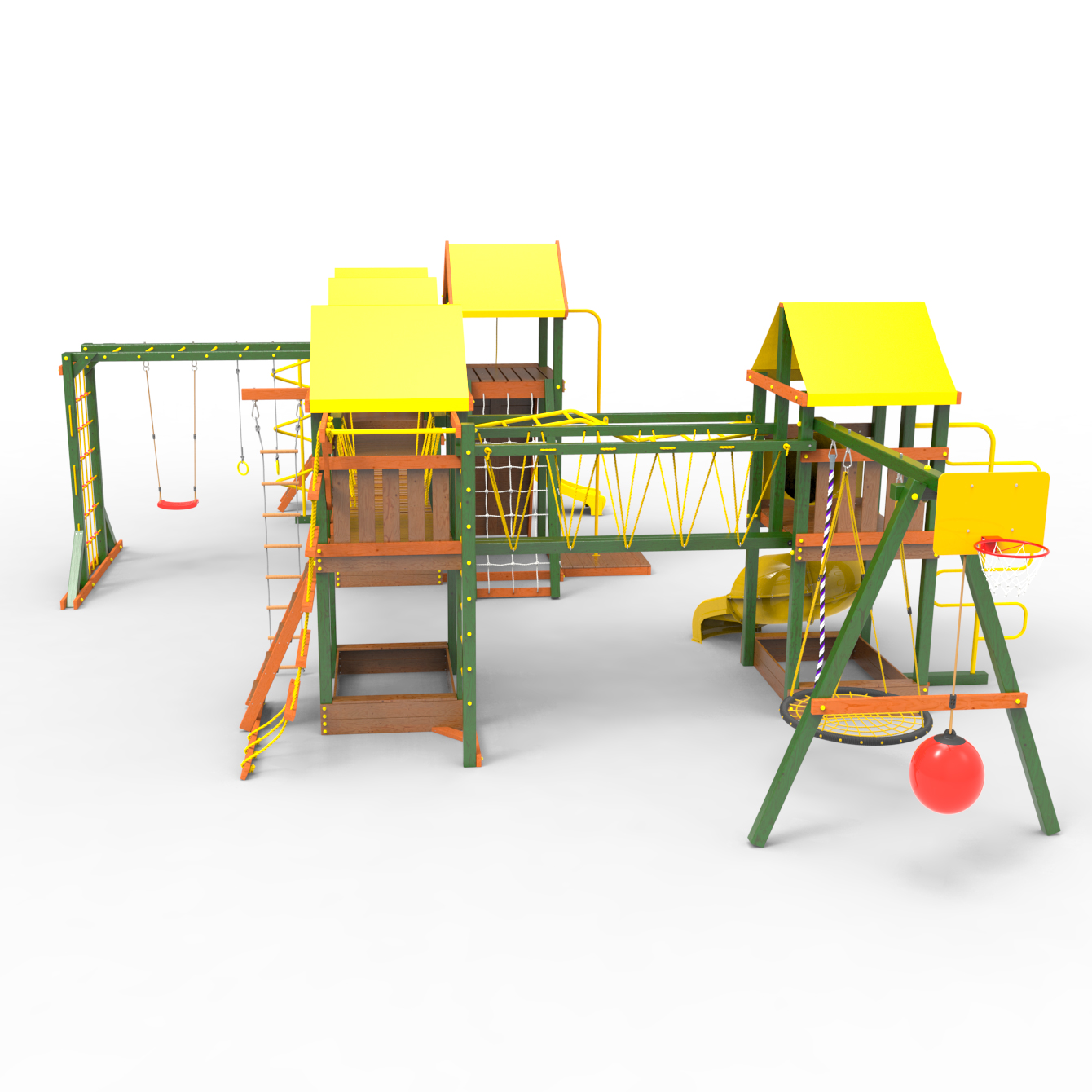 Высокий домик|Два домика|Песочница|Лестница|Шторм-трап|Скалодром|Шведская стенка|Рукоход|Турник|Руфер|Балкон|Столик с лавочками|Баскетбольная корзина|Мостик|Подвесной мост|Горка|Винтовая труба|Спираль|Волна|Пожарный шест|Сеть для лазания|Качели|ЗигЗаг|Переправа