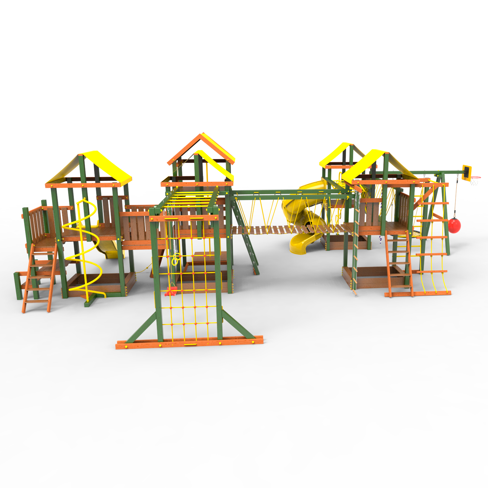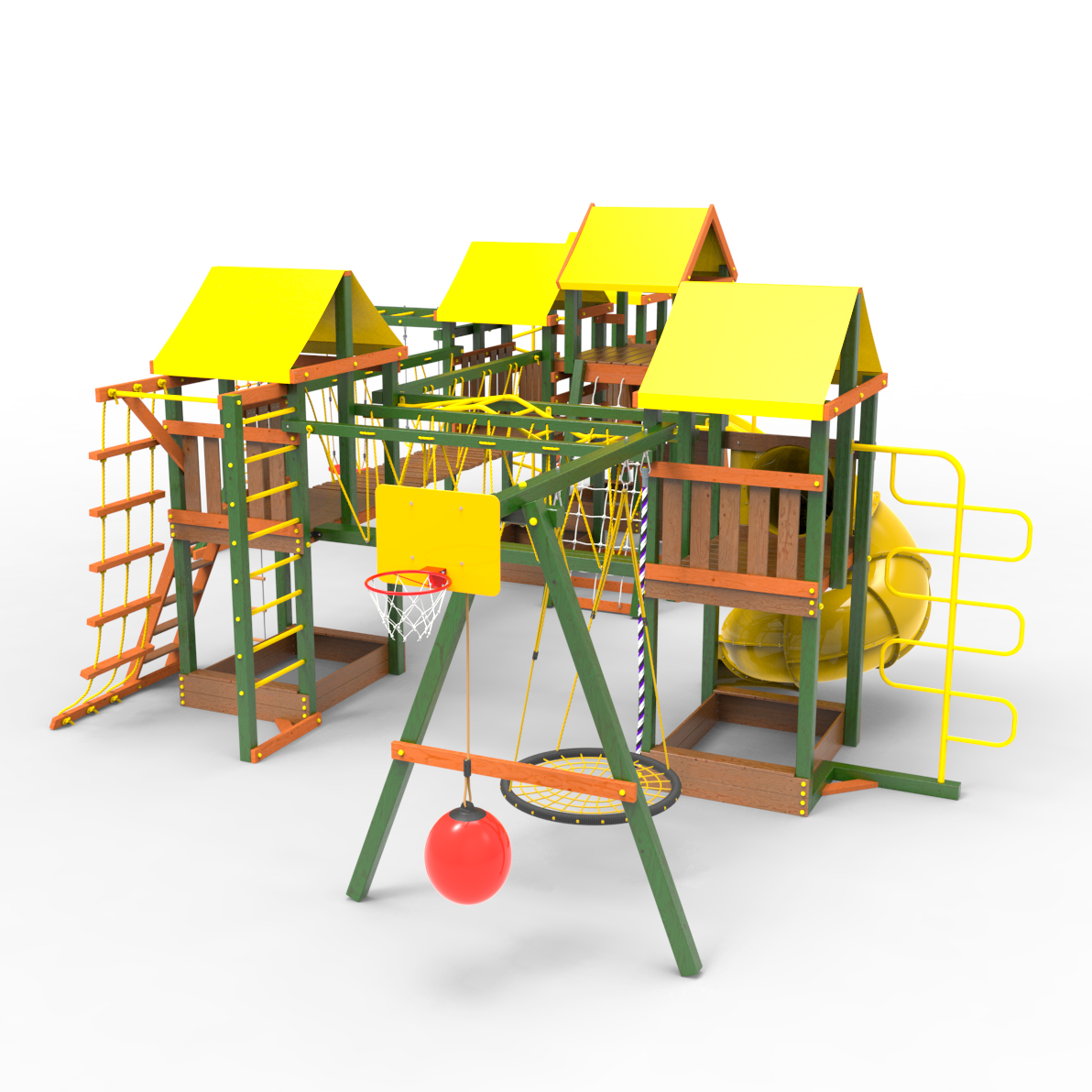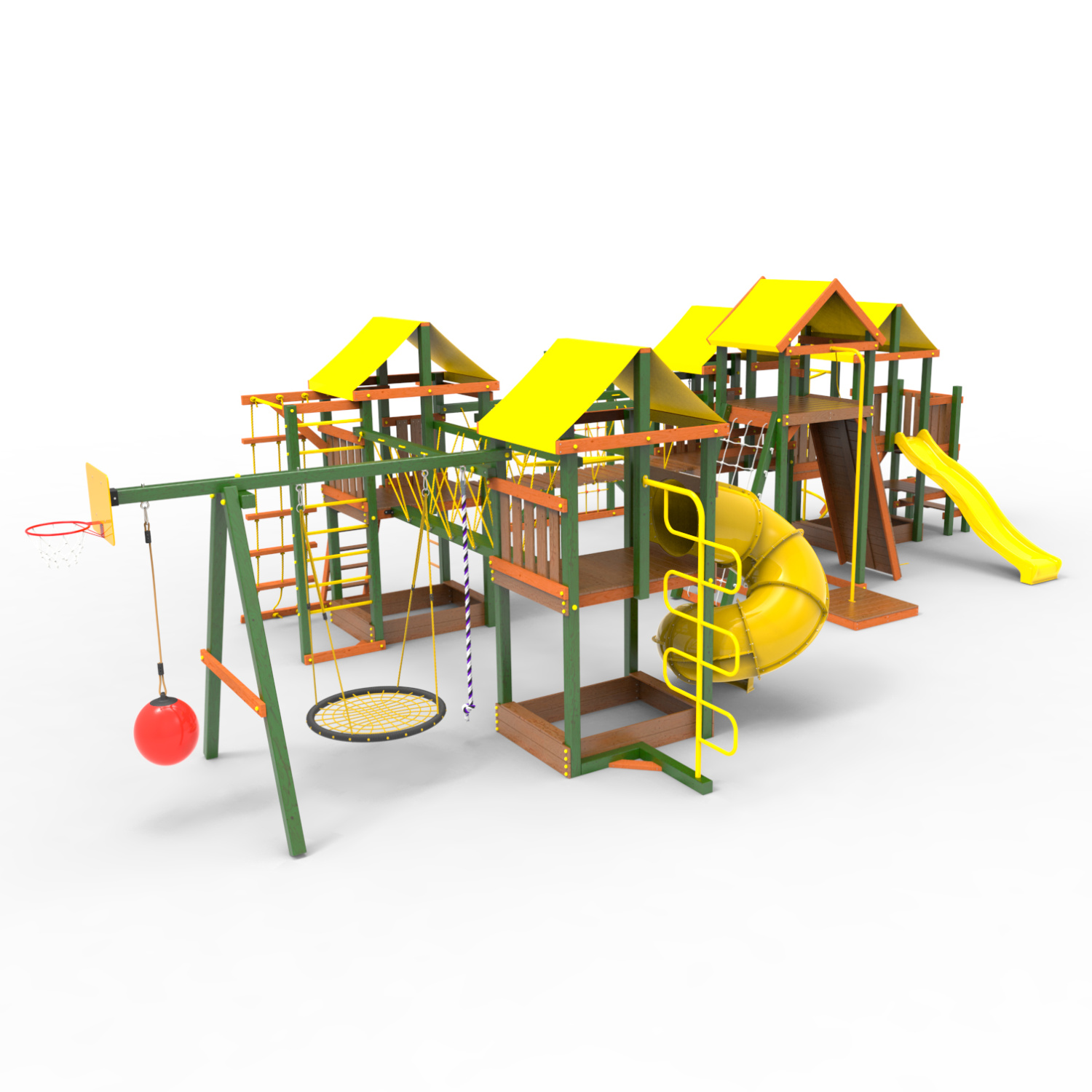 Высокий домик|Два домика|Песочница|Лестница|Шторм-трап|Скалодром|Шведская стенка|Рукоход|Турник|Руфер|Балкон|Столик с лавочками|Баскетбольная корзина|Мостик|Подвесной мост|Горка|Винтовая труба|Спираль|Волна|Пожарный шест|Сеть для лазания|Качели|ЗигЗаг|Переправа