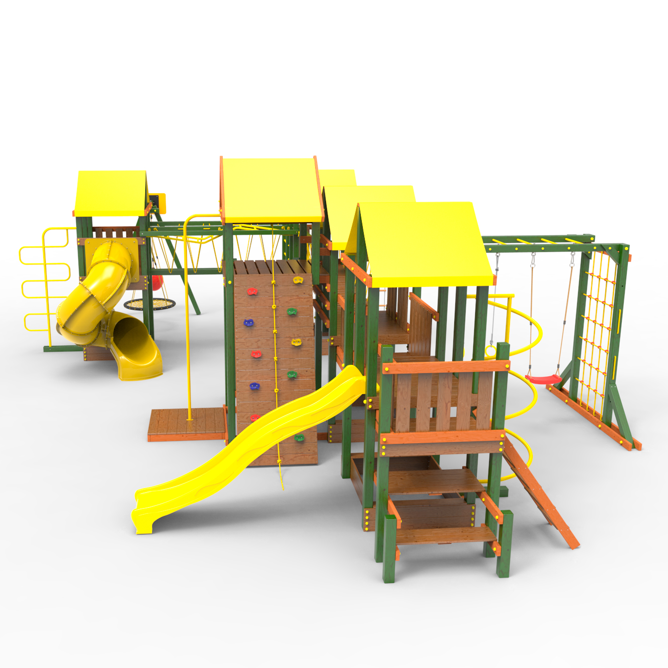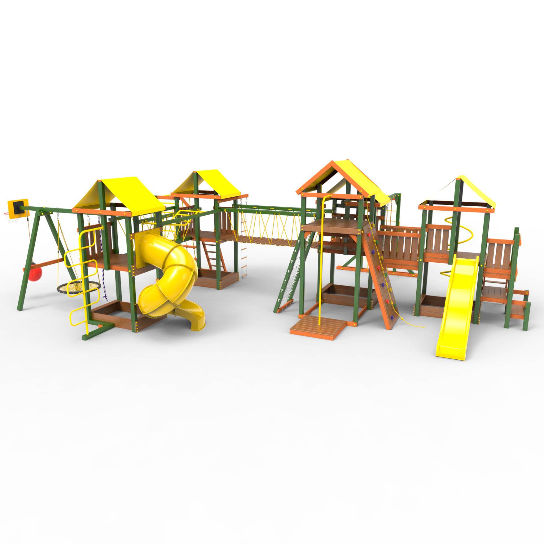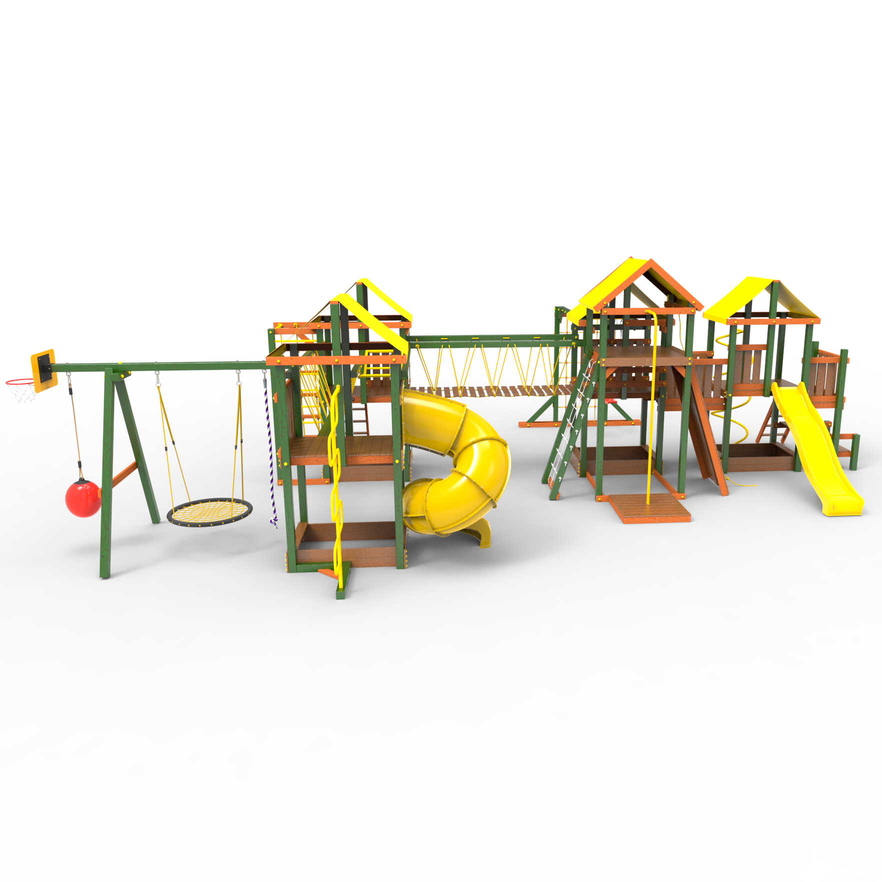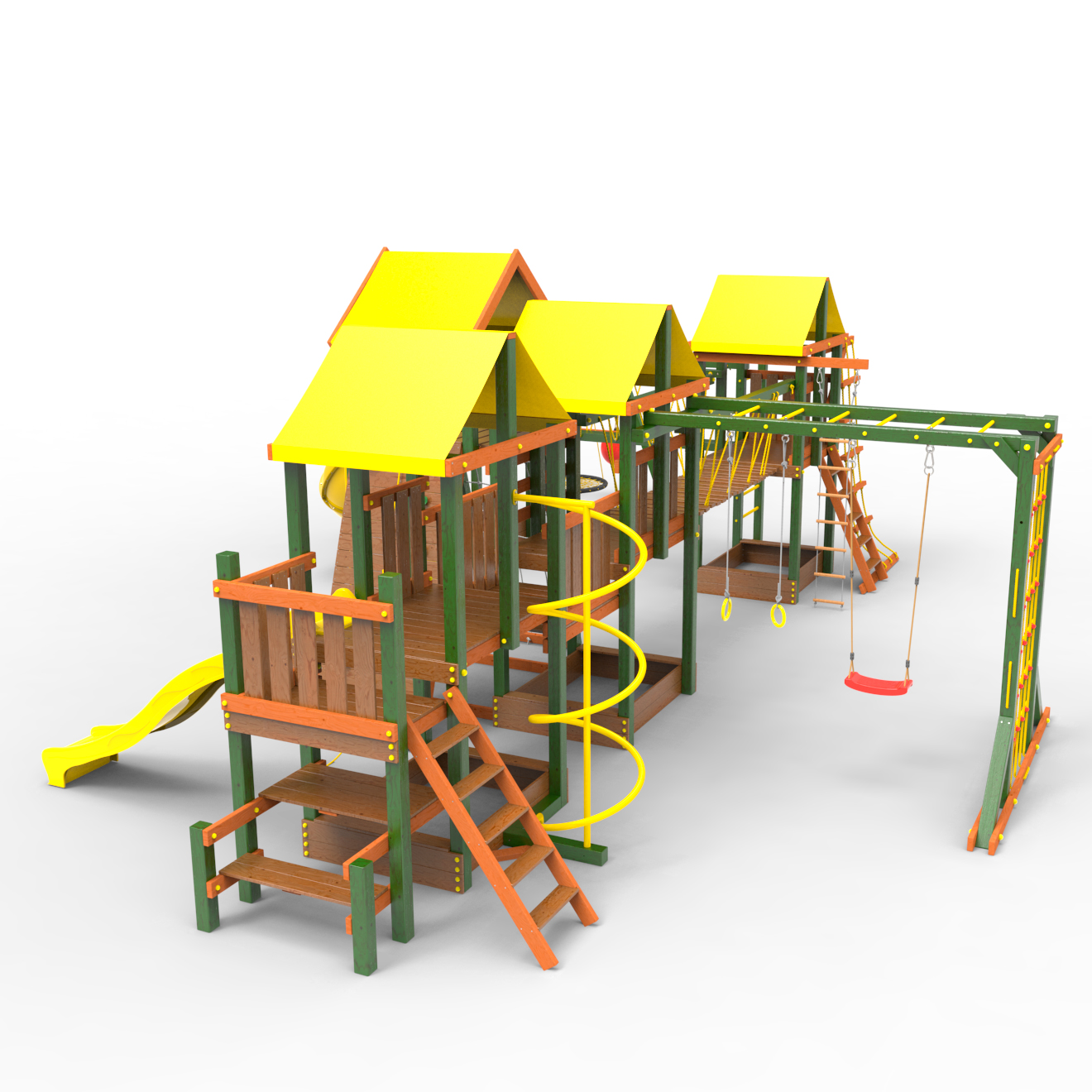 Высокий домик|Два домика|Песочница|Лестница|Шторм-трап|Скалодром|Шведская стенка|Рукоход|Турник|Руфер|Балкон|Столик с лавочками|Баскетбольная корзина|Мостик|Подвесной мост|Горка|Винтовая труба|Спираль|Волна|Пожарный шест|Сеть для лазания|Качели|ЗигЗаг|Переправа