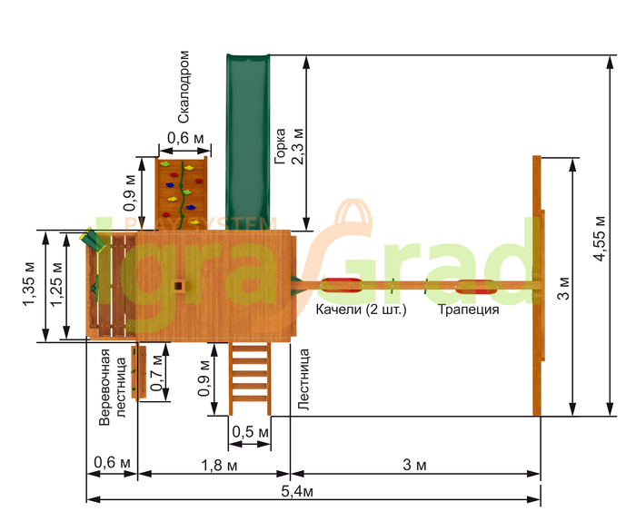 Габариты игрового комплекса для детей составляют: