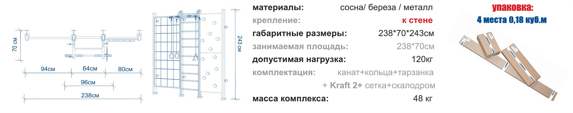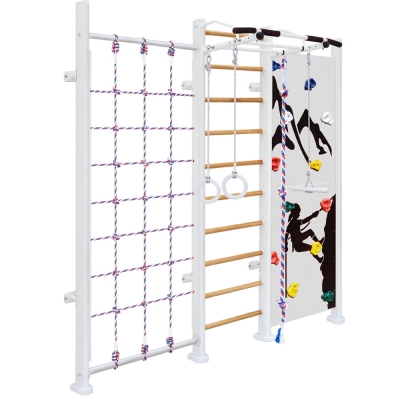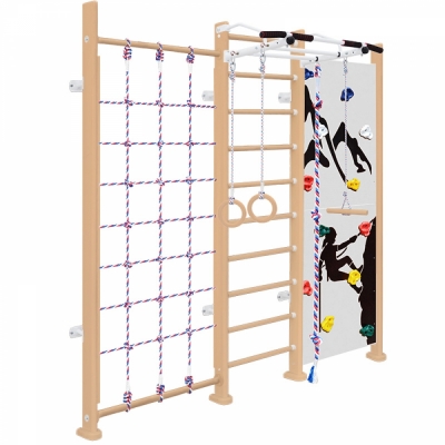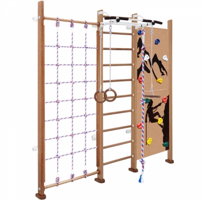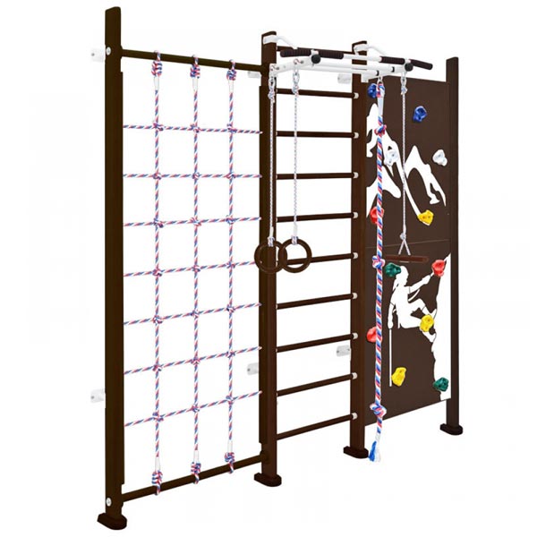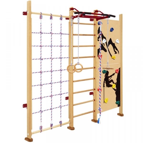 | Комплектация | шведская стенка, турник, сетка, скалодром, канат, кольца, тарзанка |