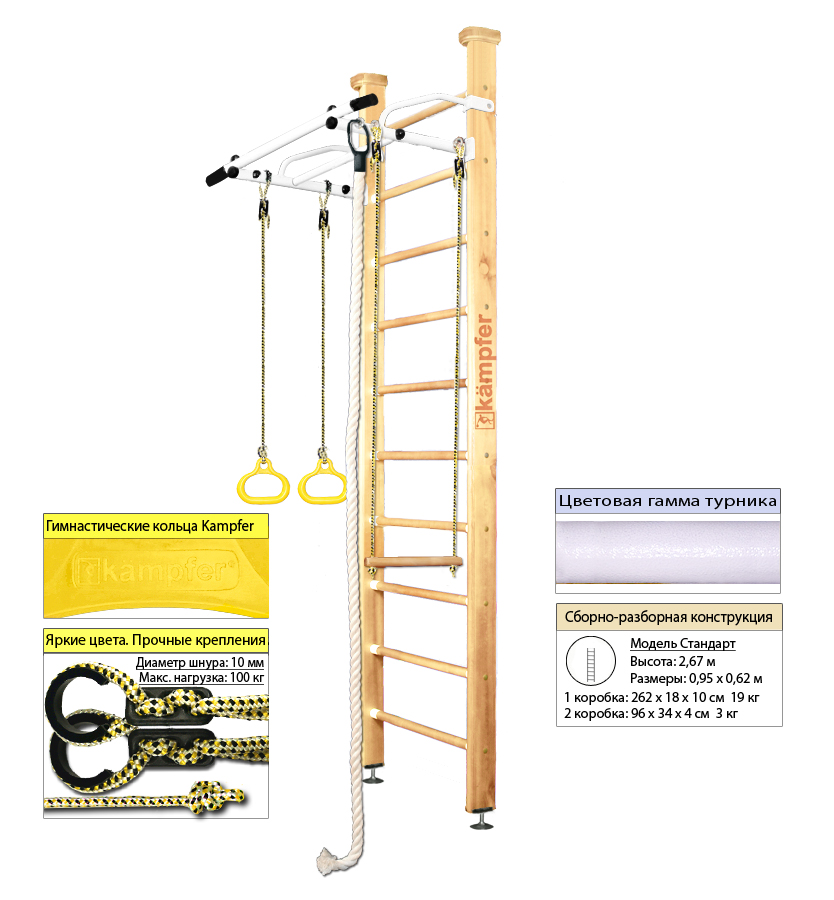— Ширина шведской стенки: 65 см
