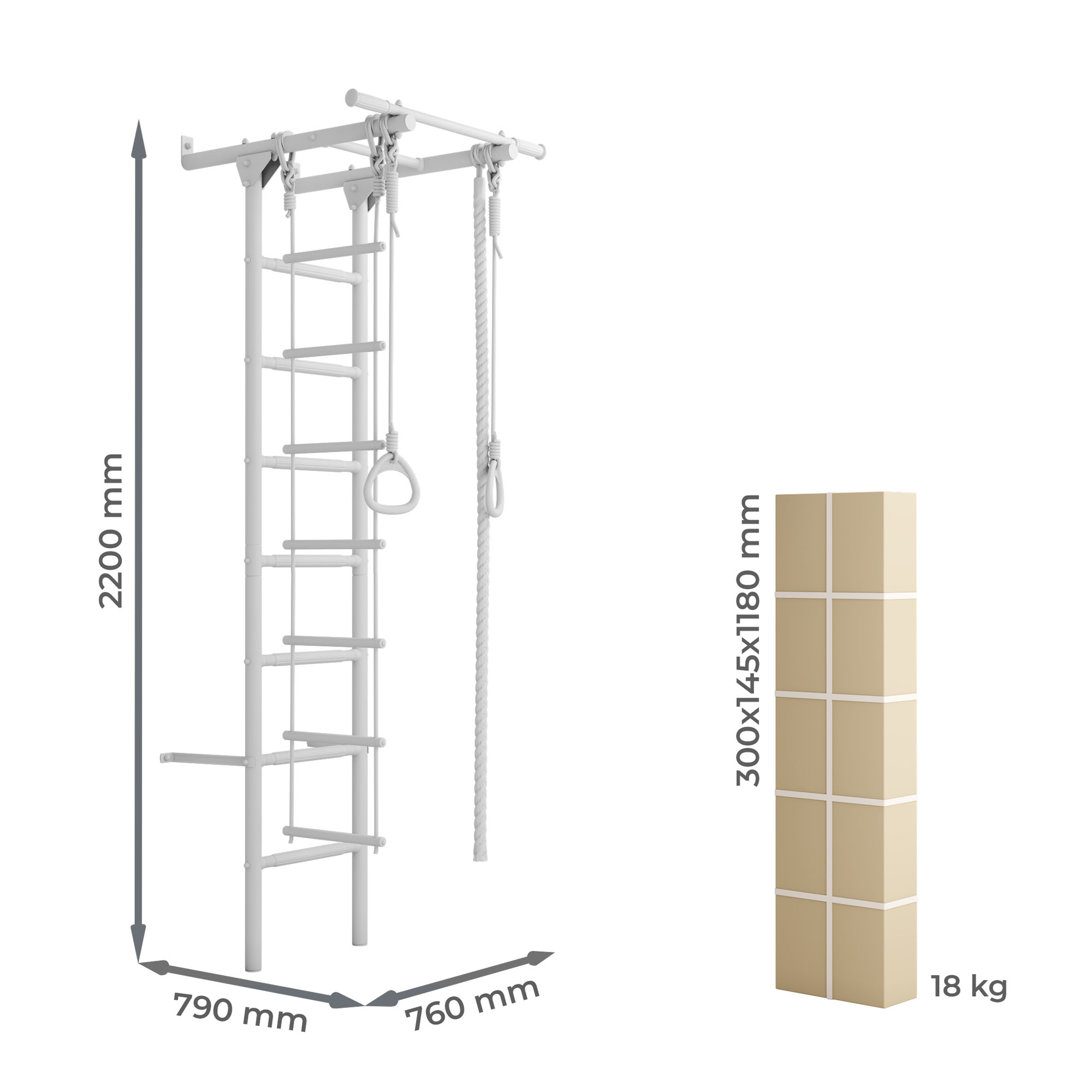 Шведская стенка с фиксированным турником заменяет собой целый спортивный зал, при этом не занимая много места у вас дома. Универсальный тренажер — на нем можно выполнять упражнения для детей и взрослых на растяжку, все группы мышц рук и ног, пресса и спины, развивать тонус, силу и выносливость с раннего возраста, в любую погоду и не выходя из квартиры.